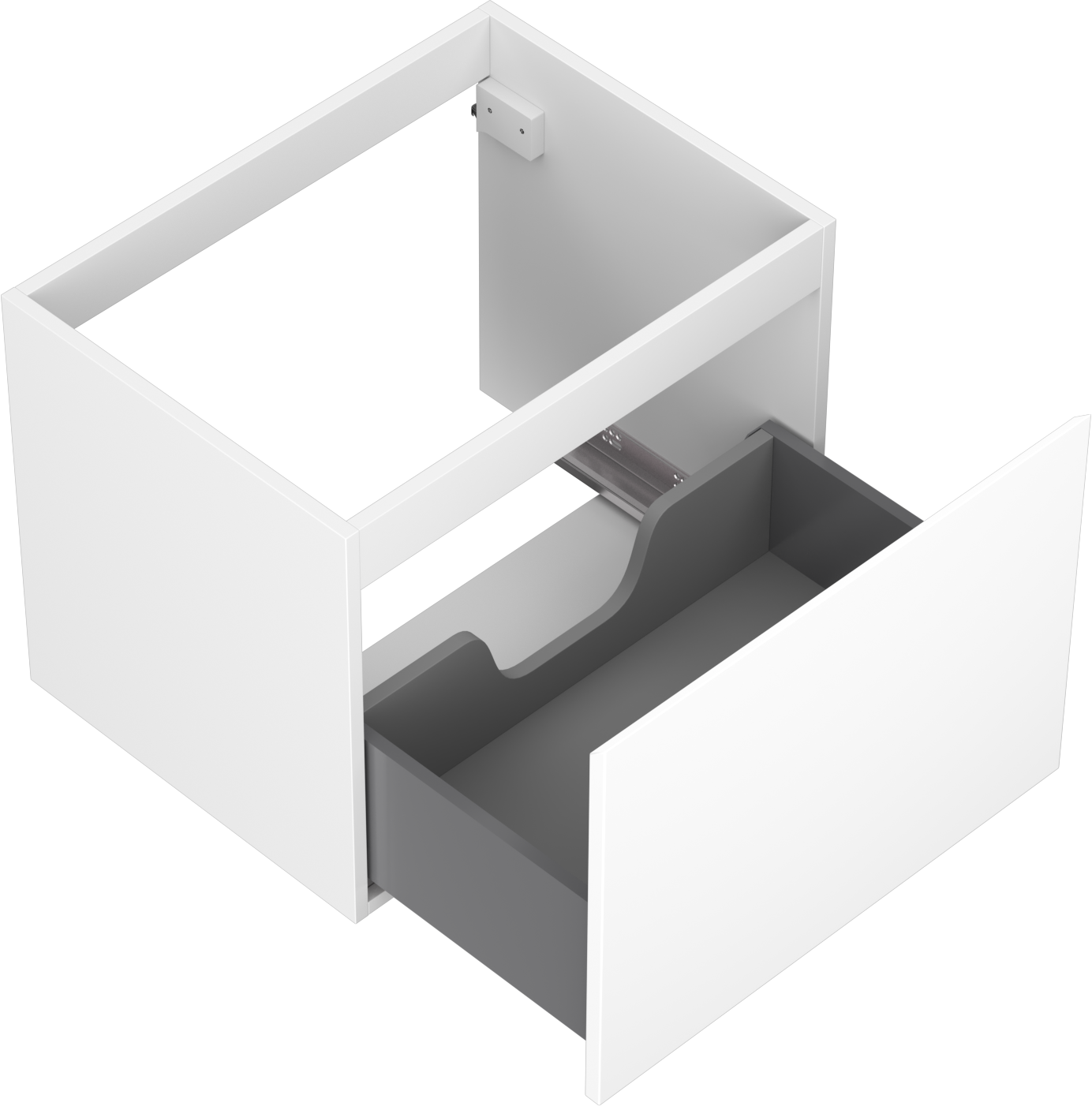 The cutout in the drawer is designed in such a way as to accommodate the siphon, which is essential in sink installations. This allows the furniture to be fully functional without having to give up drawer space for the installation.