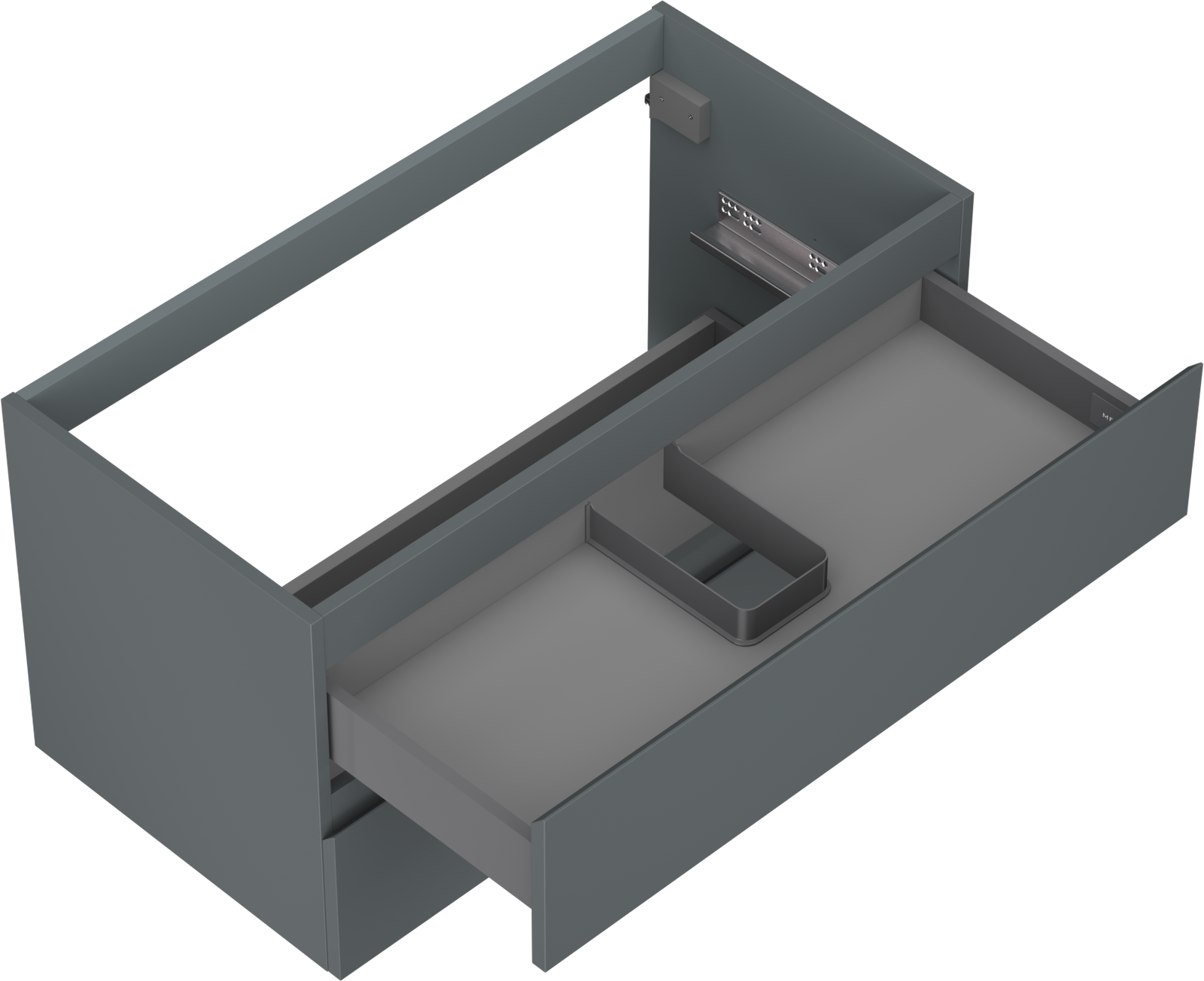 The cutout in the drawer is designed in such a way as to accommodate the siphon, which is essential in sink installations. This allows the furniture to be fully functional without having to give up drawer space for the installation.