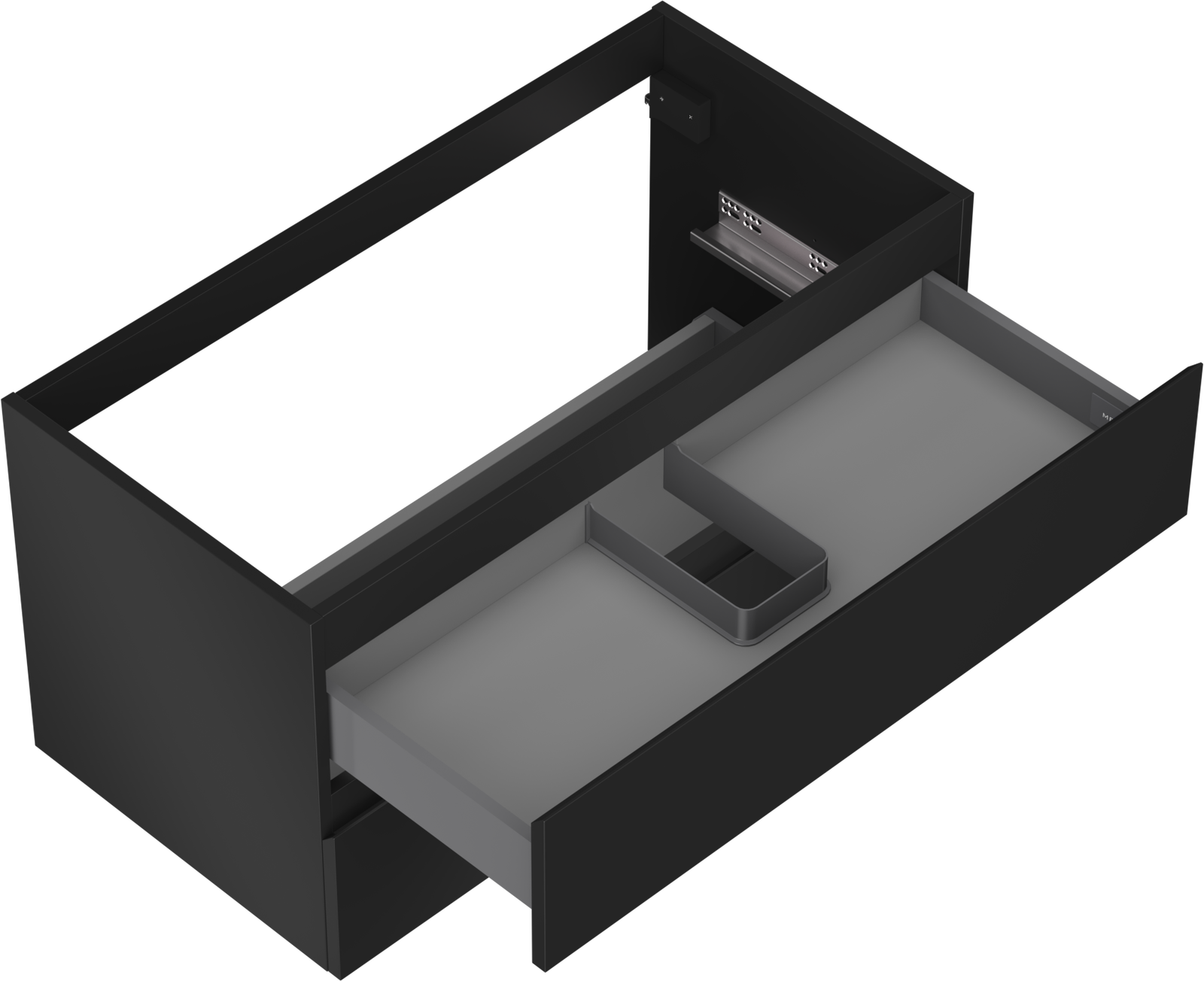 The cutout in the drawer is designed in such a way as to accommodate the siphon, which is essential in sink installations. This allows the furniture to be fully functional without having to give up drawer space for the installation.