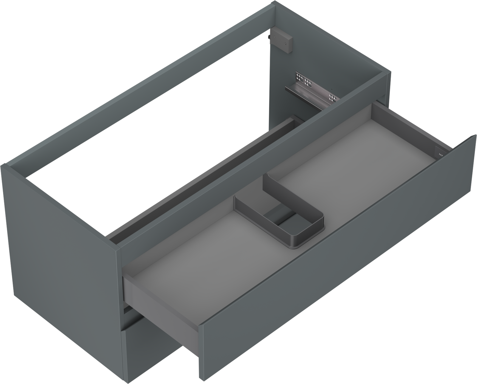 The cutout in the drawer is designed in such a way as to accommodate the siphon, which is essential in sink installations. This allows the furniture to be fully functional without having to give up drawer space for the installation.