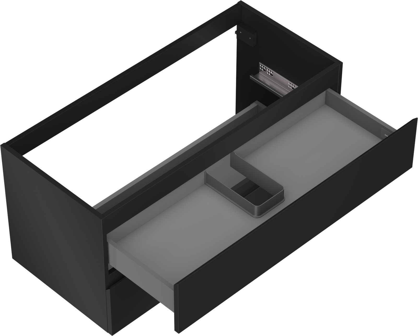 The cutout in the drawer is designed in such a way as to accommodate the siphon, which is essential in sink installations. This allows the furniture to be fully functional without having to give up drawer space for the installation.