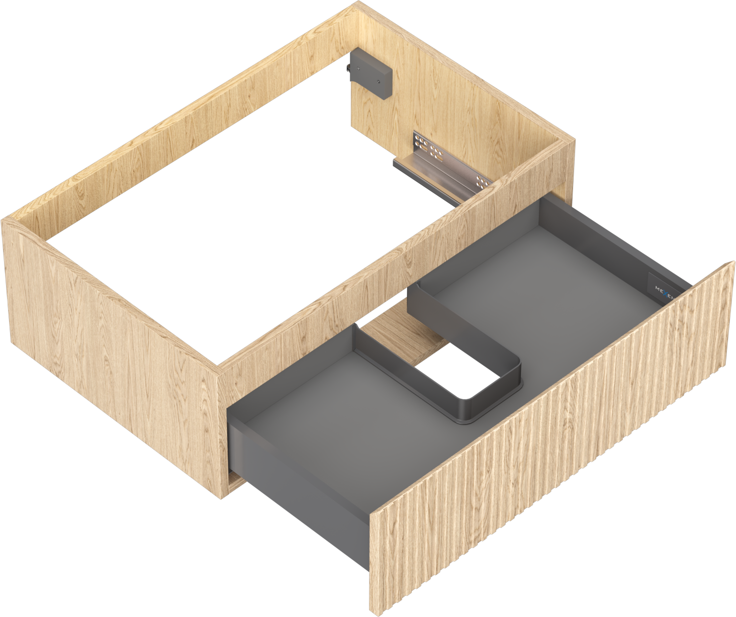 The cutout in the drawer is designed in such a way as to accommodate the siphon, which is essential in sink installations. This allows the furniture to be fully functional without having to give up drawer space for the installation.