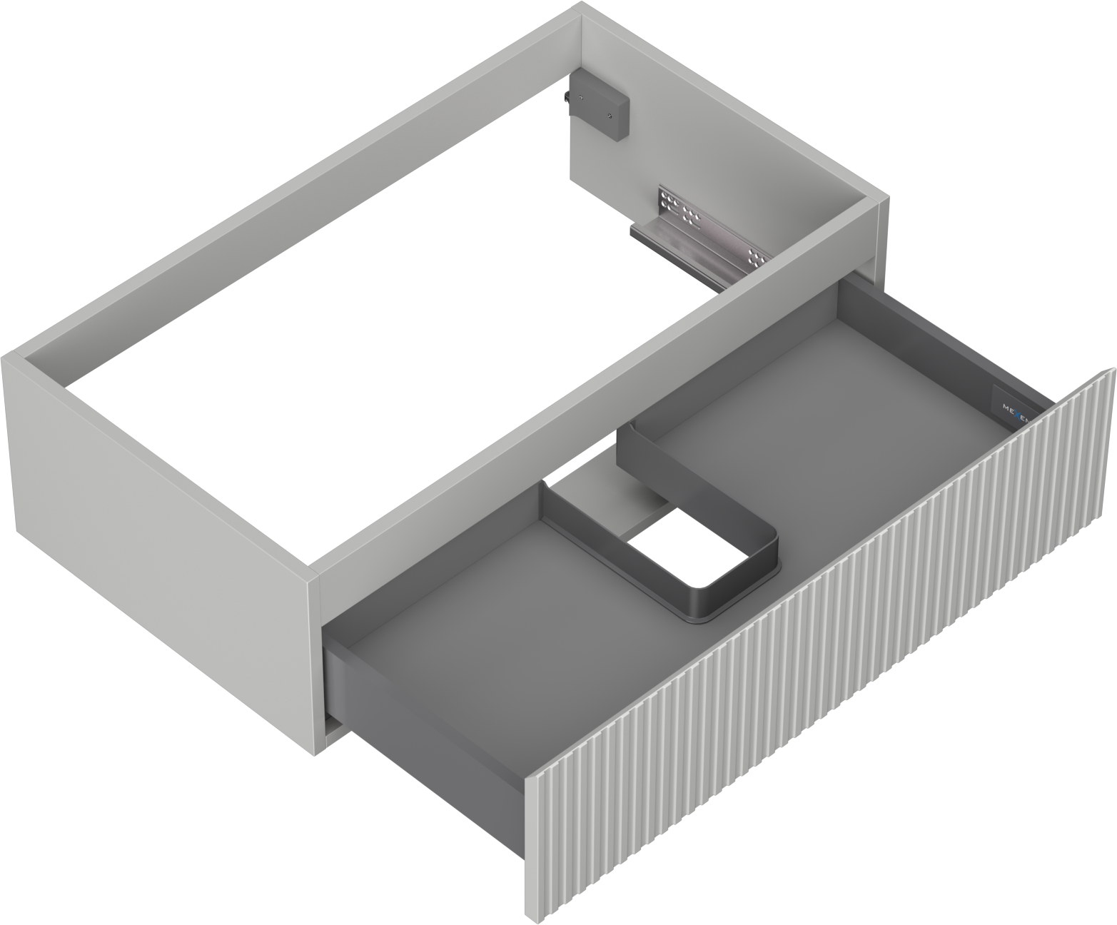 The cutout in the drawer is designed in such a way as to accommodate the siphon, which is essential in sink installations. This allows the furniture to be fully functional without having to give up drawer space for the installation.