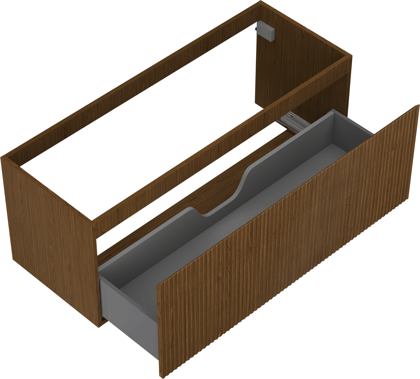 The cutout in the drawer is designed in such a way as to accommodate the siphon, which is essential in sink installations. This allows the furniture to be fully functional without having to give up drawer space for the installation.