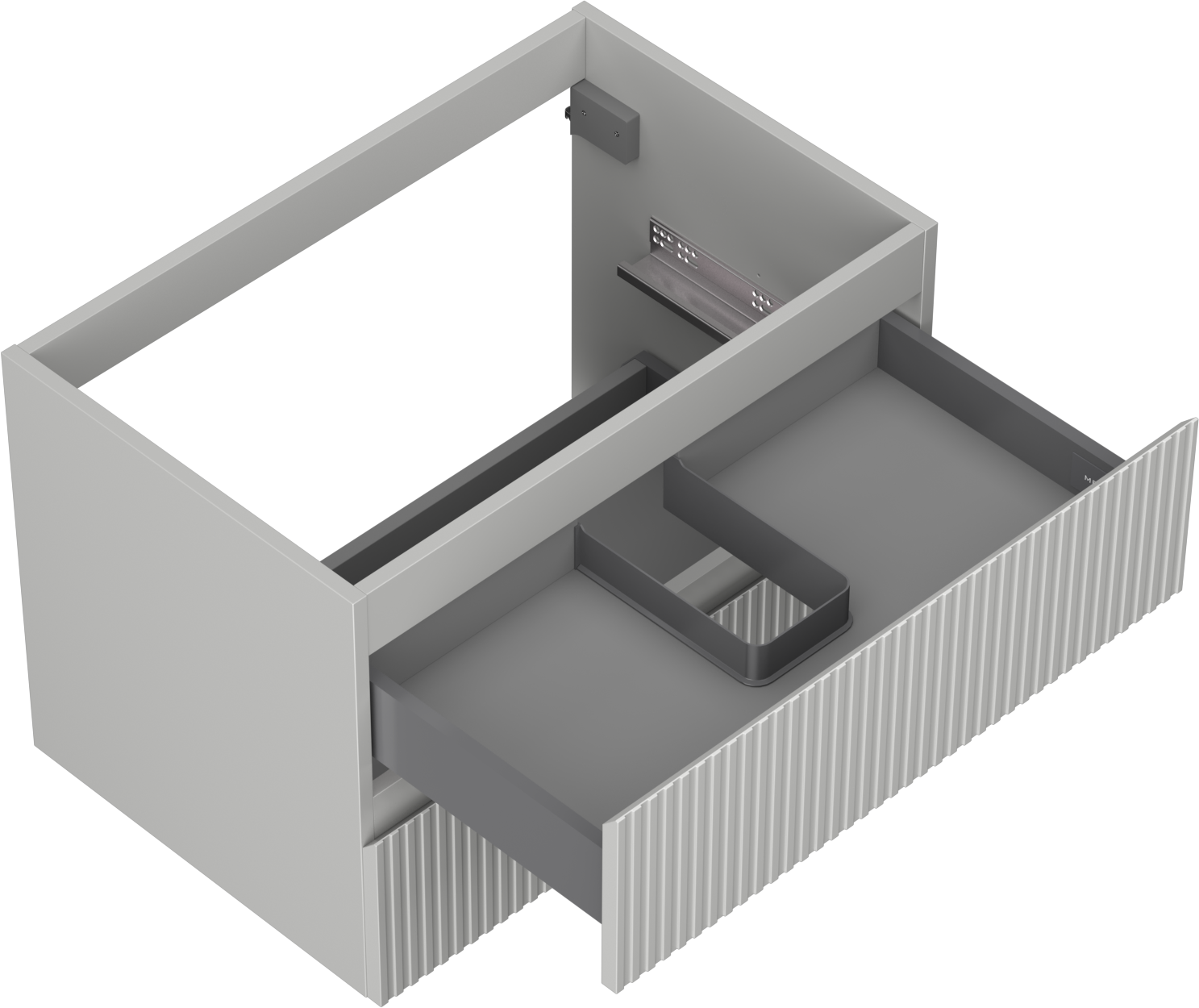 The cutout in the drawer is designed in such a way as to accommodate the siphon, which is essential in sink installations. This allows the furniture to be fully functional without having to give up drawer space for the installation.