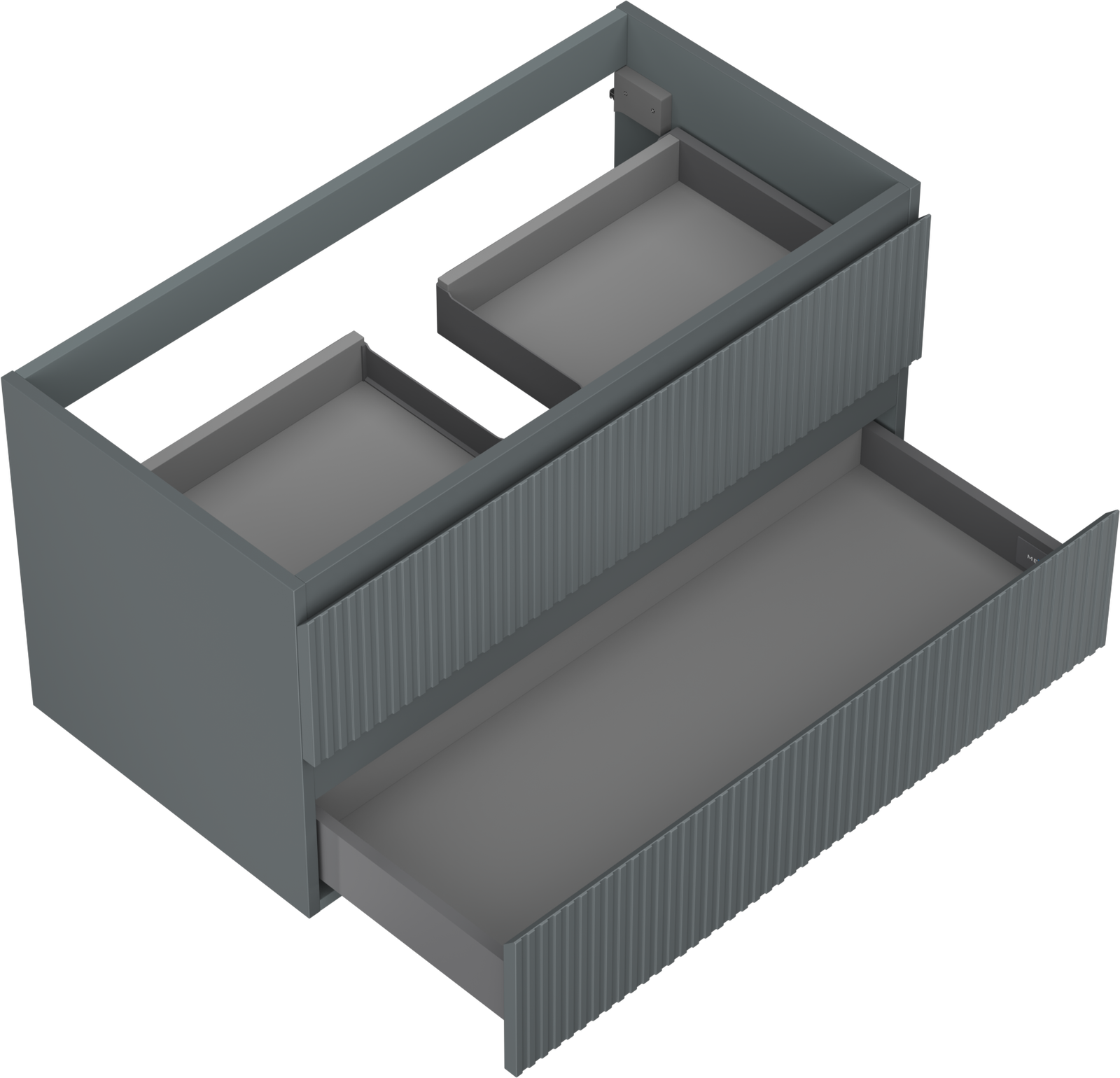 The cutout in the drawer is designed in such a way as to accommodate the siphon, which is essential in sink installations. This allows the furniture to be fully functional without having to give up drawer space for the installation.