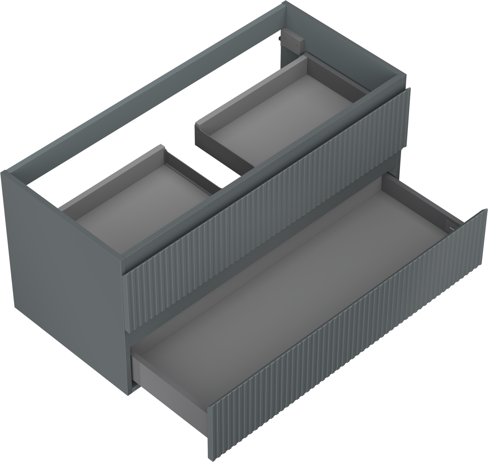 The cutout in the drawer is designed in such a way as to accommodate the siphon, which is essential in sink installations. This allows the furniture to be fully functional without having to give up drawer space for the installation.