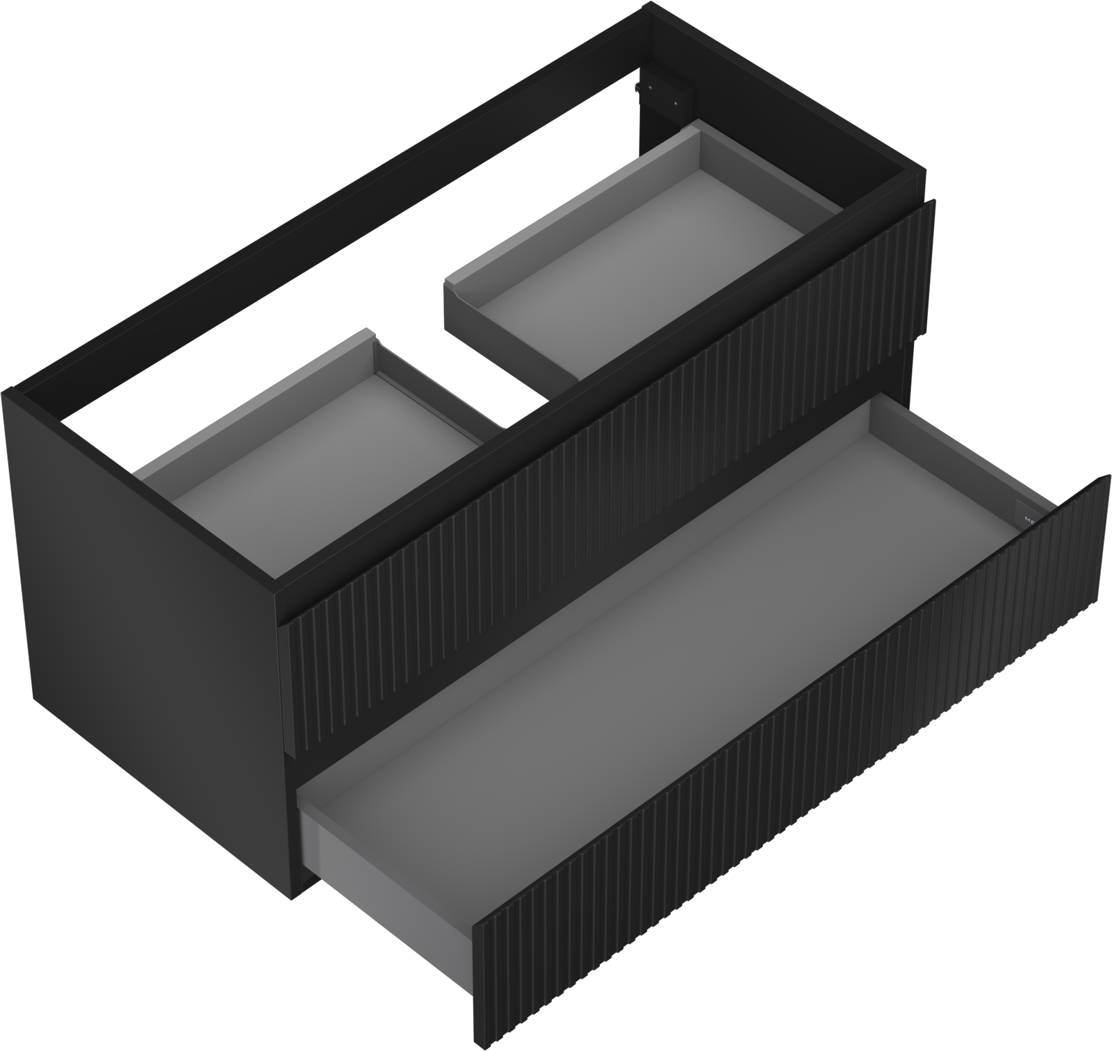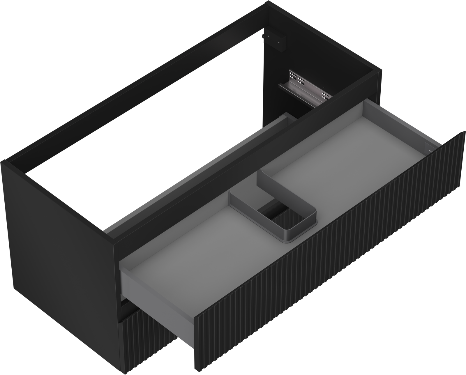 The cutout in the drawer is designed in such a way as to accommodate the siphon, which is essential in sink installations. This allows the furniture to be fully functional without having to give up drawer space for the installation.