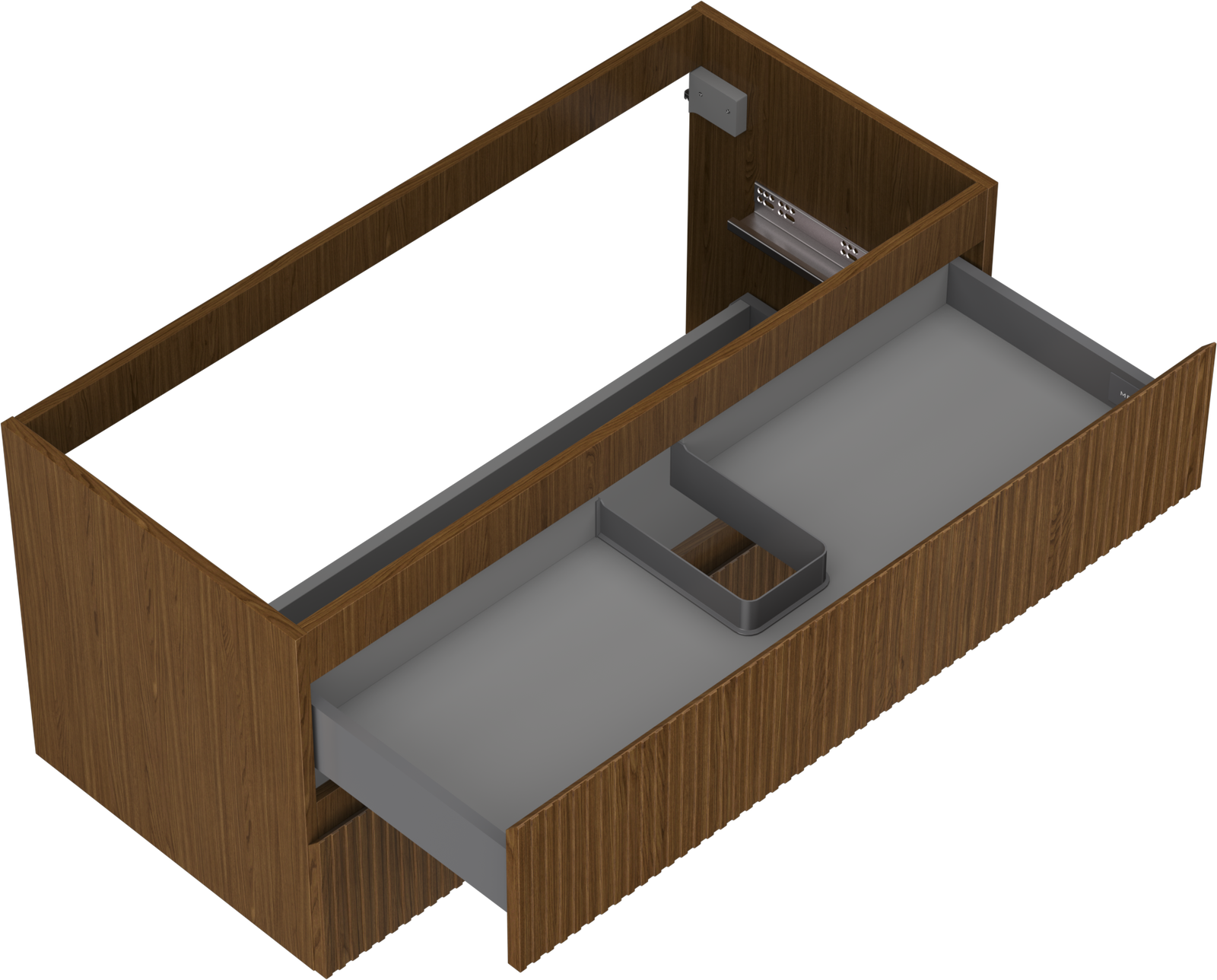 The cutout in the drawer is designed in such a way as to accommodate the siphon, which is essential in sink installations. This allows the furniture to be fully functional without having to give up drawer space for the installation.
