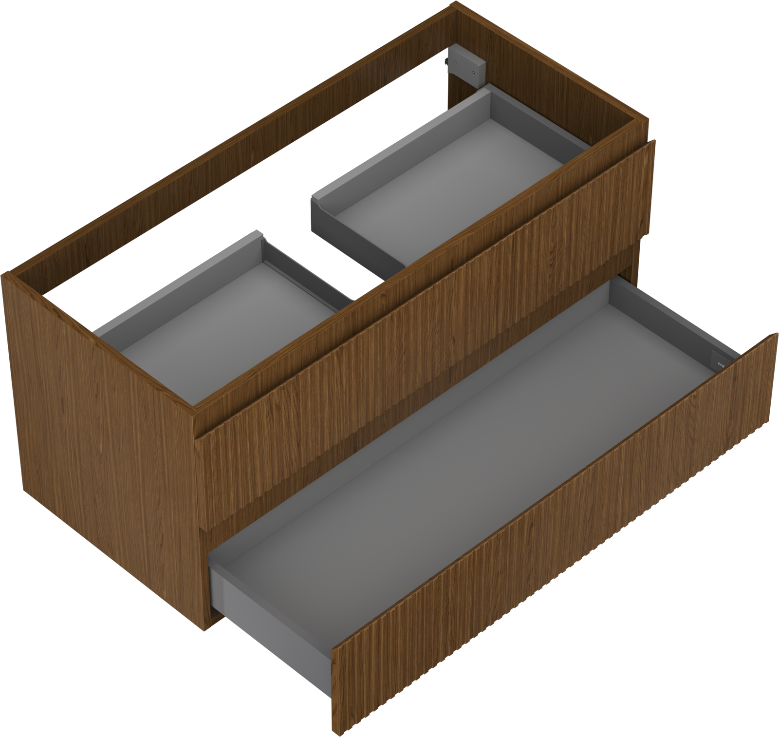 Mexen Rivel 100 cm Under-Sink Bathroom Cabinet, 2 Drawers, Fluted, Walnut - 91A20-10047-2-BFF86