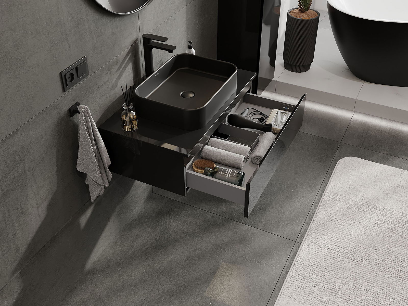 Our modular bathroom furniture can be combined in various colour configurations, allowing for complete personalisation. You can choose both the appearance and functions of individual elements, enabling you to adapt the furniture to your own stylistic and functional preferences.