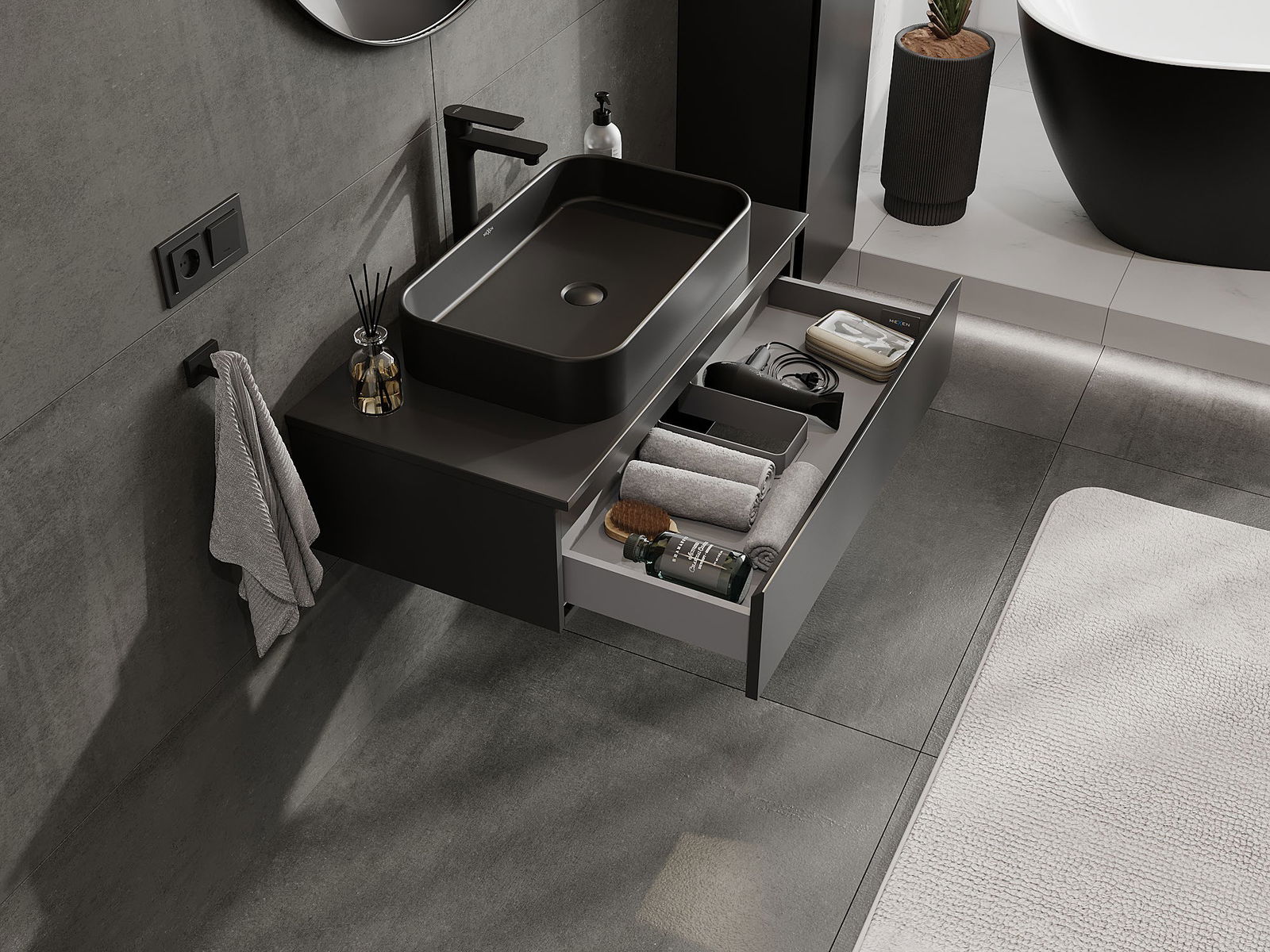 Our modular bathroom furniture can be combined in various colour configurations, allowing for complete personalisation. You can choose both the appearance and functions of individual elements, enabling you to adapt the furniture to your own stylistic and functional preferences.