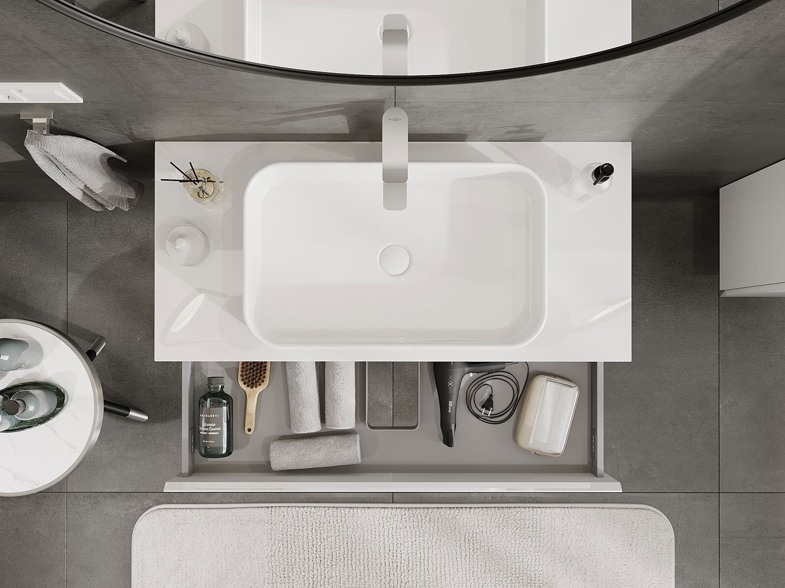 Our modular bathroom furniture can be combined in various colour configurations, allowing for complete personalisation. You can choose both the appearance and functions of individual elements, enabling you to adapt the furniture to your own stylistic and functional preferences.