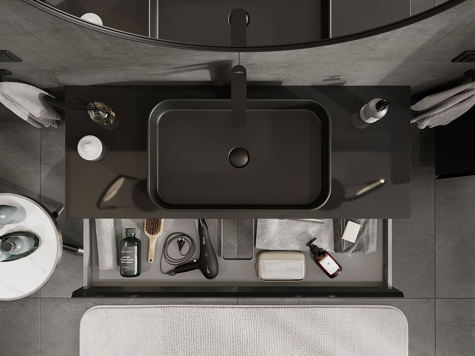 Our modular bathroom furniture can be combined in various colour configurations, allowing for complete personalisation. You can choose both the appearance and functions of individual elements, enabling you to adapt the furniture to your own stylistic and functional preferences.