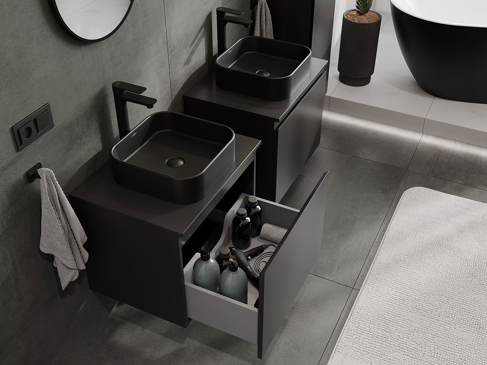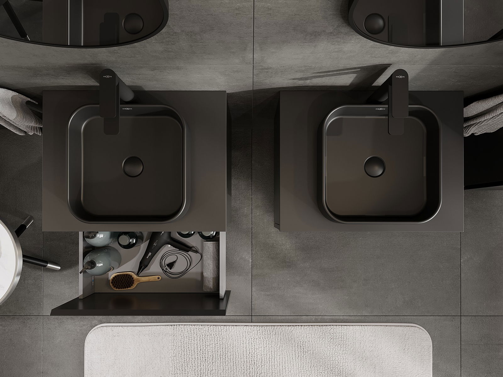 Our modular bathroom furniture can be combined in various colour configurations, allowing for complete personalisation. You can choose both the appearance and functions of individual elements, enabling you to adapt the furniture to your own stylistic and functional preferences.