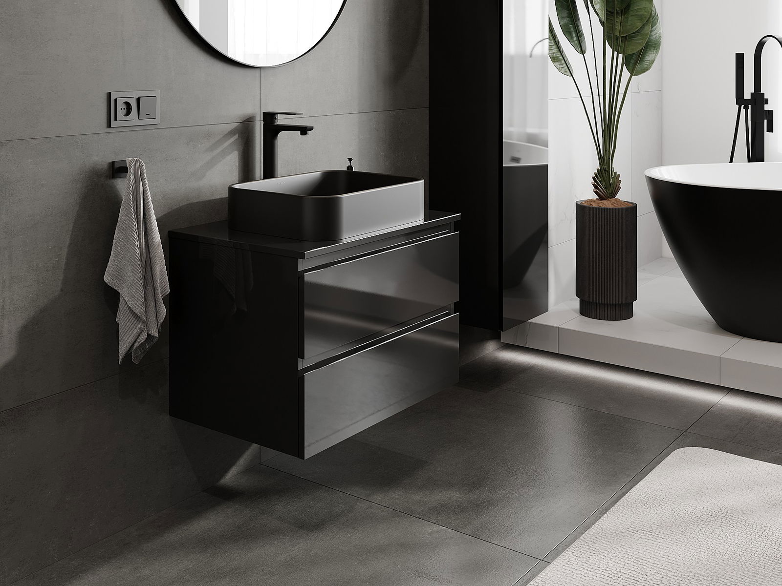 Our modular bathroom furniture can be combined in various colour configurations, allowing for complete personalisation. You can choose both the appearance and functions of individual elements, enabling you to adapt the furniture to your own stylistic and functional preferences.