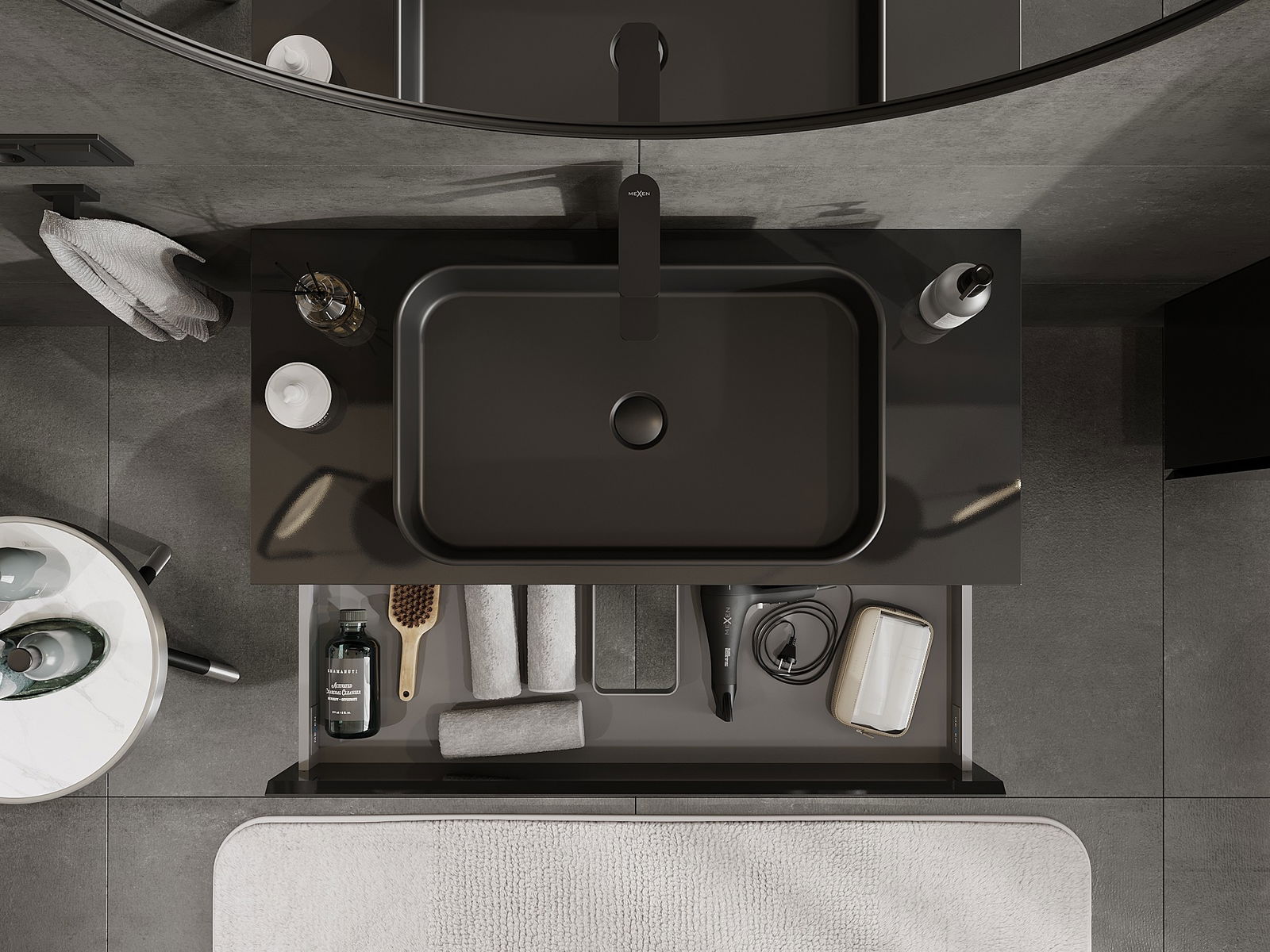 Mexen Orio bathroom cabinet for 100 cm countertop with top, 2 drawers, black gloss - 91A10-10047-2-BFFC70