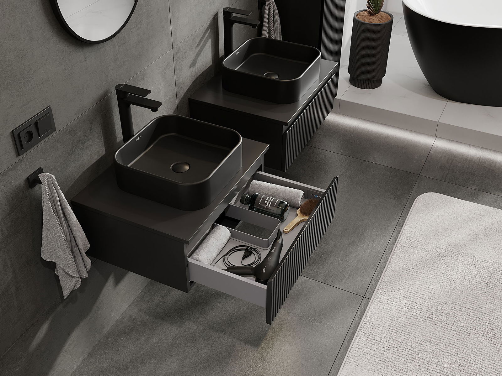 Mexen Rivel bathroom cabinet with countertop 60 cm, 1 drawer, fluted, black matte - 91A20-06023-1-BFC71