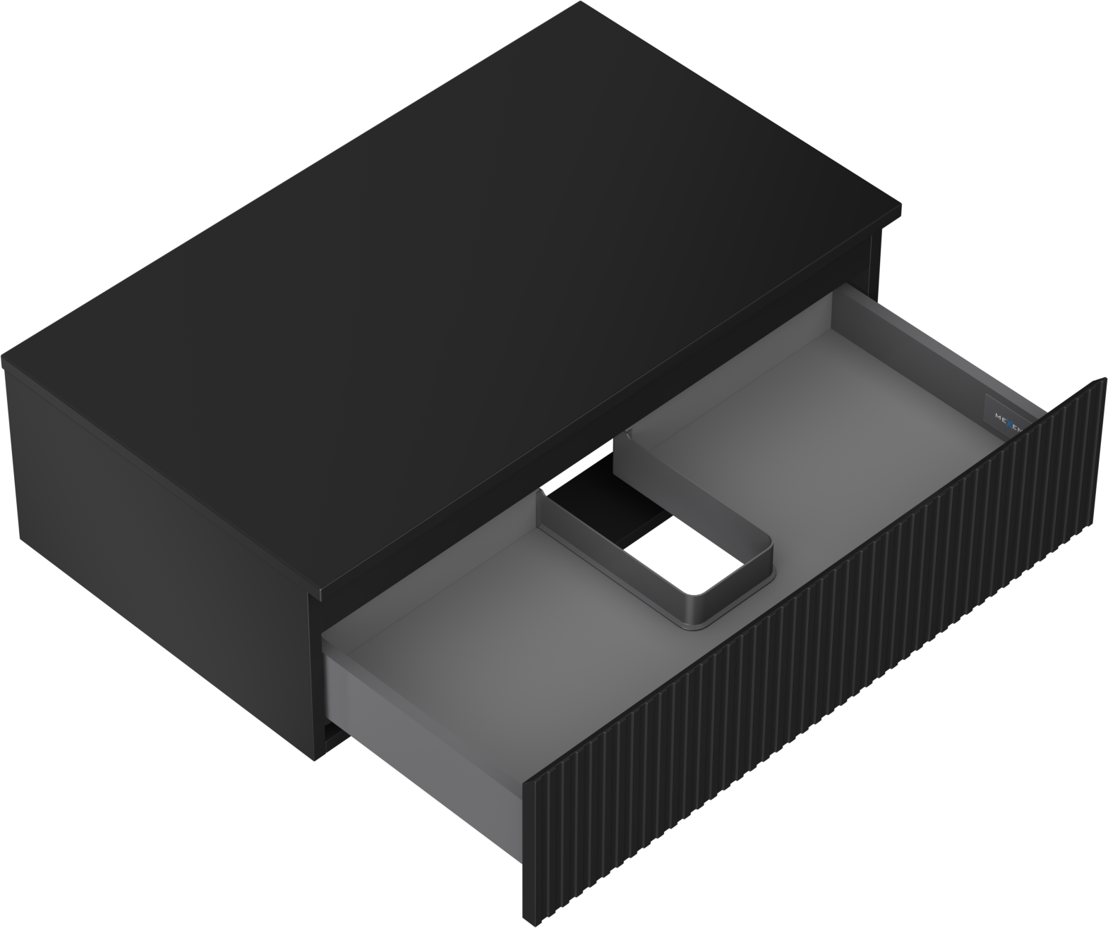 The cutout in the drawer is designed in such a way as to accommodate the siphon, which is essential in sink installations. This allows the furniture to be fully functional without having to give up drawer space for the installation.