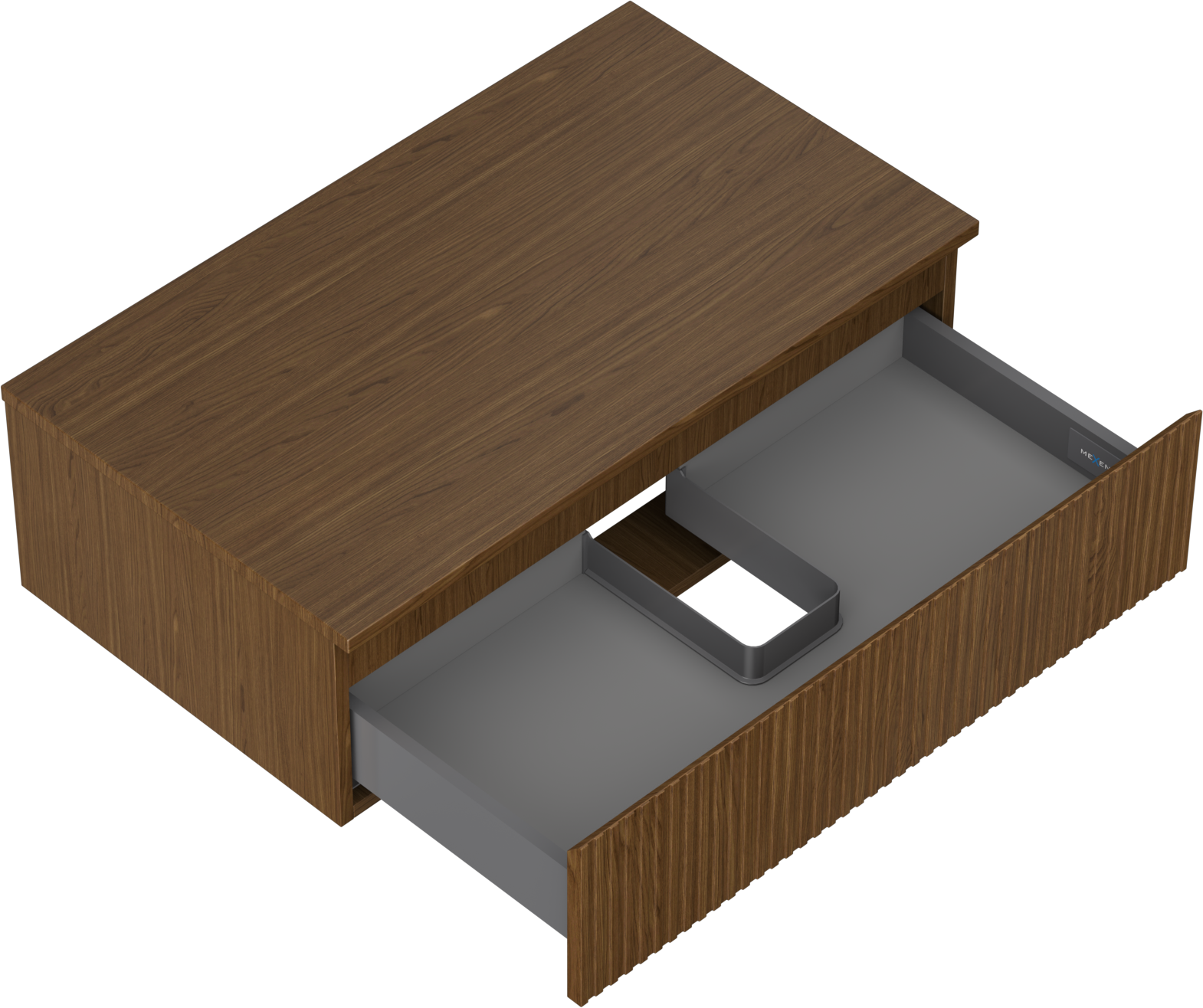 The cutout in the drawer is designed in such a way as to accommodate the siphon, which is essential in sink installations. This allows the furniture to be fully functional without having to give up drawer space for the installation.