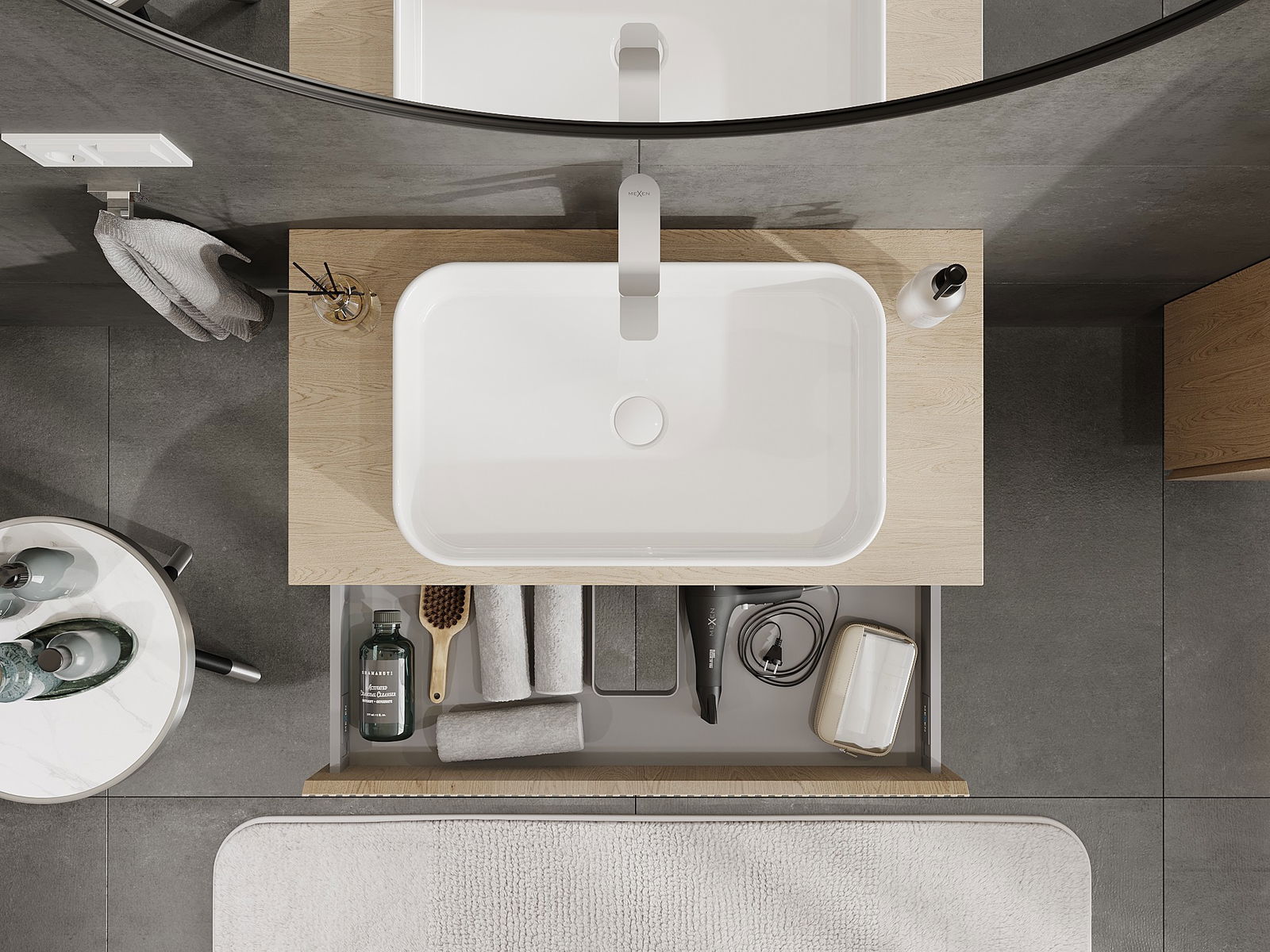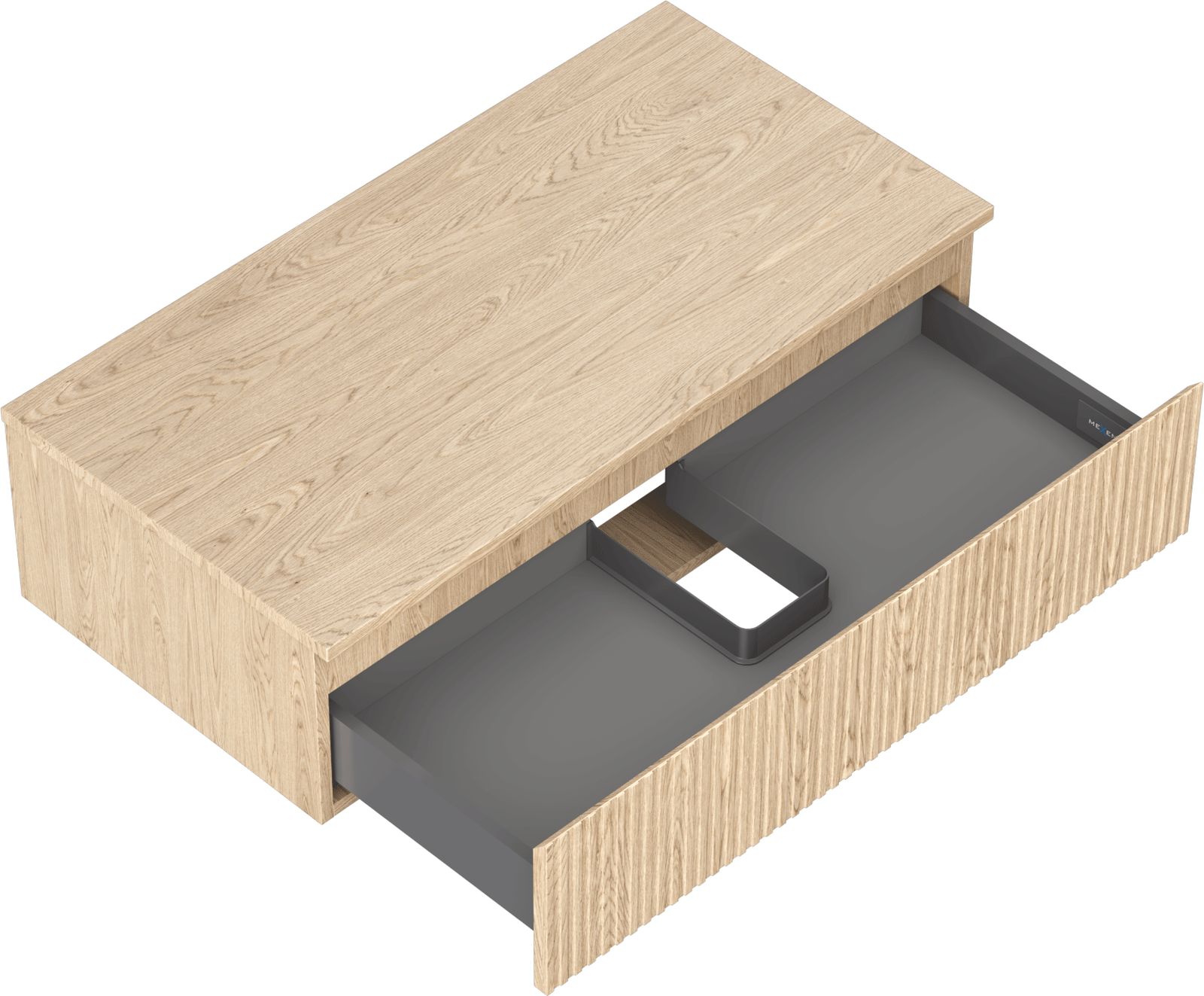The cutout in the drawer is designed in such a way as to accommodate the siphon, which is essential in sink installations. This allows the furniture to be fully functional without having to give up drawer space for the installation.