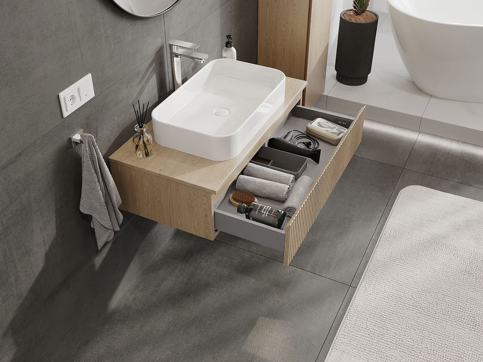 Our modular bathroom furniture can be combined in various colour configurations, allowing for complete personalisation. You can choose both the appearance and functions of individual elements, enabling you to adapt the furniture to your own stylistic and functional preferences.