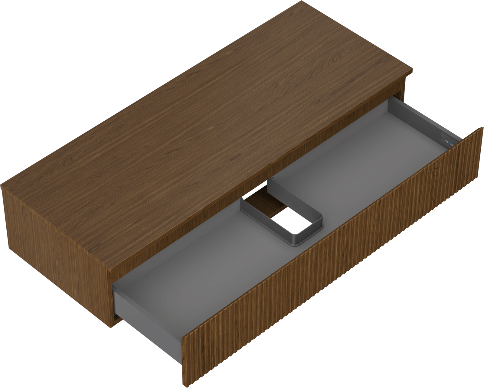 The cutout in the drawer is designed in such a way as to accommodate the siphon, which is essential in sink installations. This allows the furniture to be fully functional without having to give up drawer space for the installation.