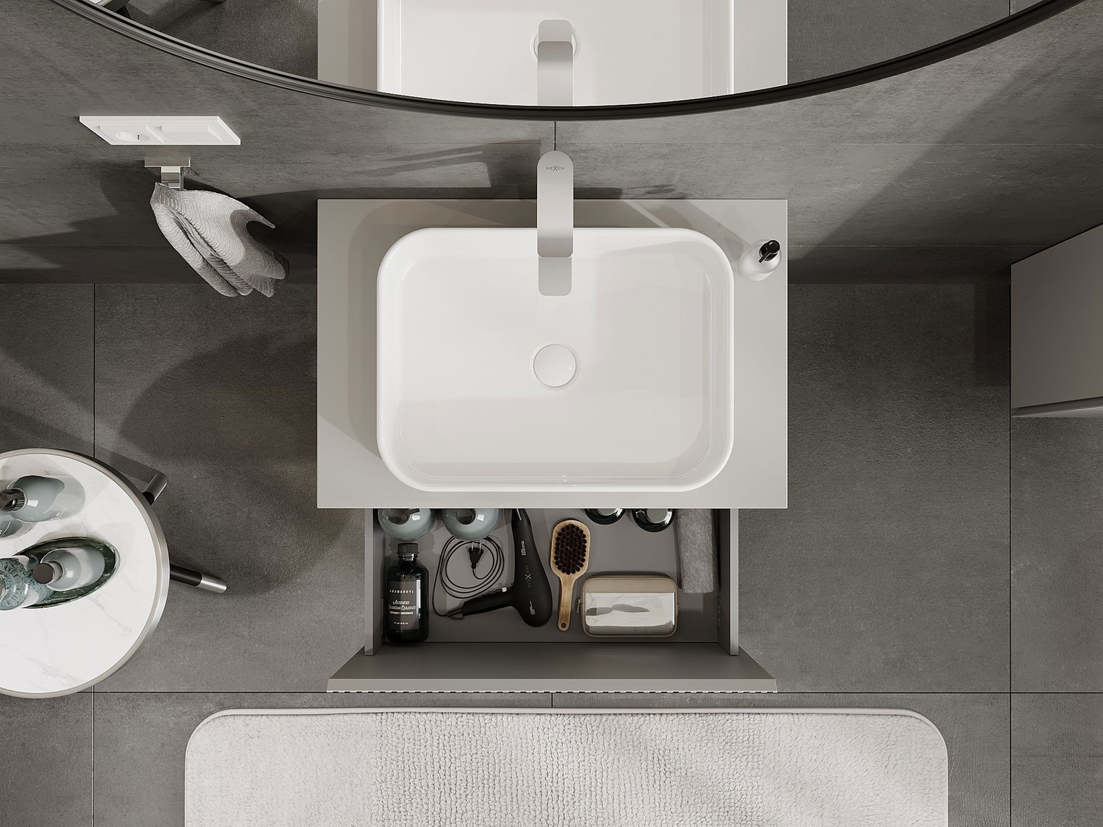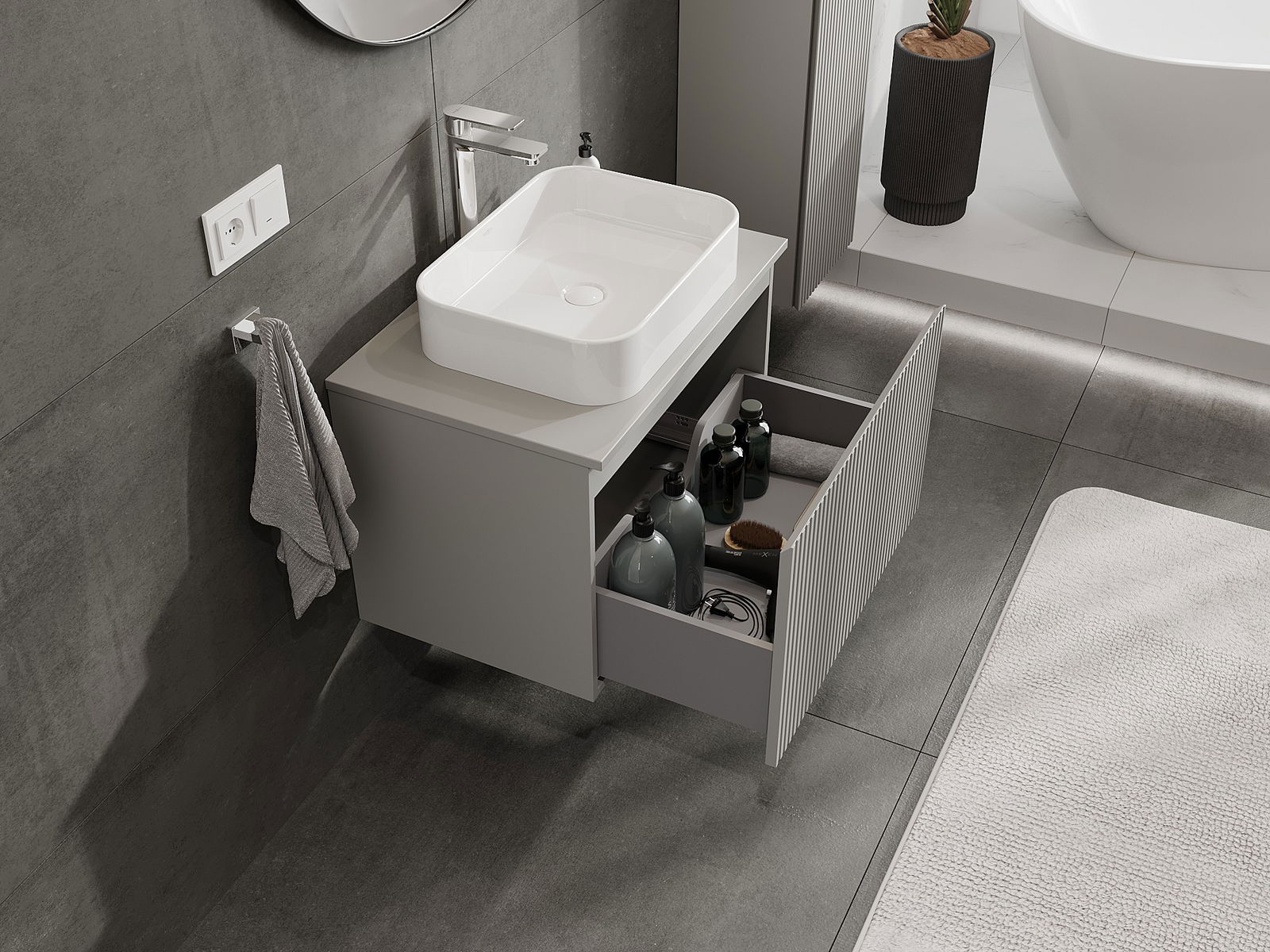 Our modular bathroom furniture can be combined in various colour configurations, allowing for complete personalisation. You can choose both the appearance and functions of individual elements, enabling you to adapt the furniture to your own stylistic and functional preferences.