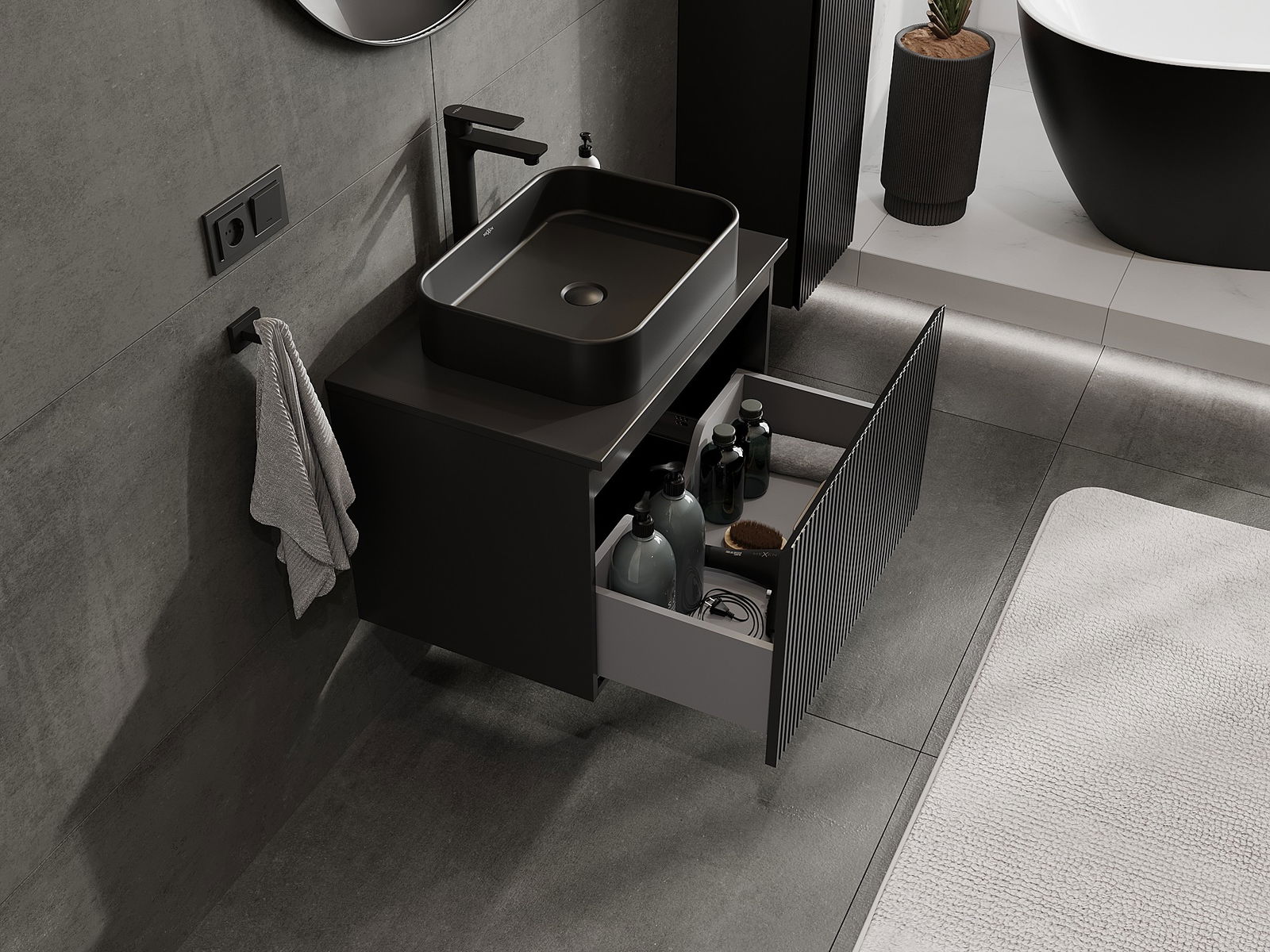 Our modular bathroom furniture can be combined in various colour configurations, allowing for complete personalisation. You can choose both the appearance and functions of individual elements, enabling you to adapt the furniture to your own stylistic and functional preferences.