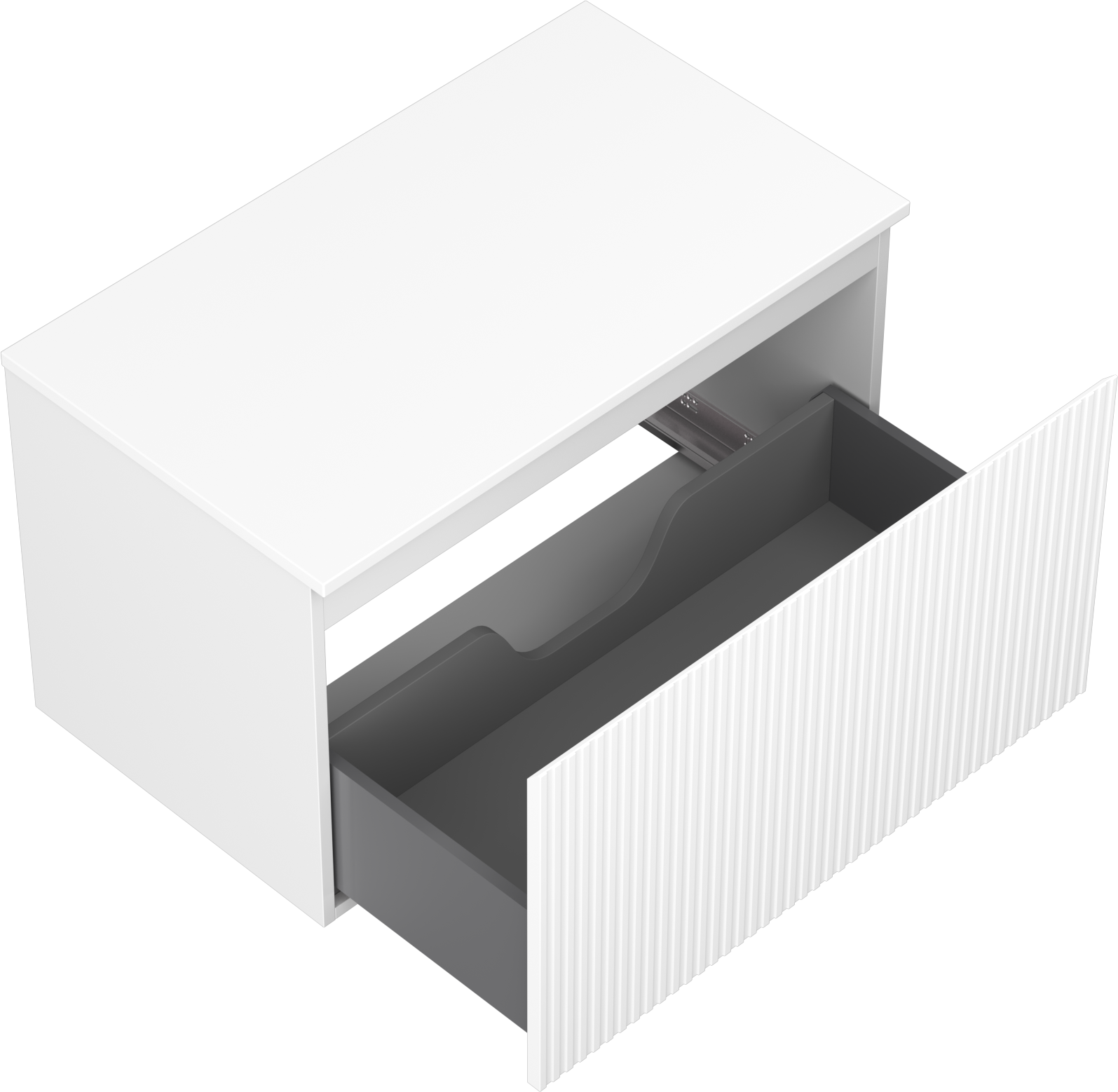 The cutout in the drawer is designed in such a way as to accommodate the siphon, which is essential in sink installations. This allows the furniture to be fully functional without having to give up drawer space for the installation.