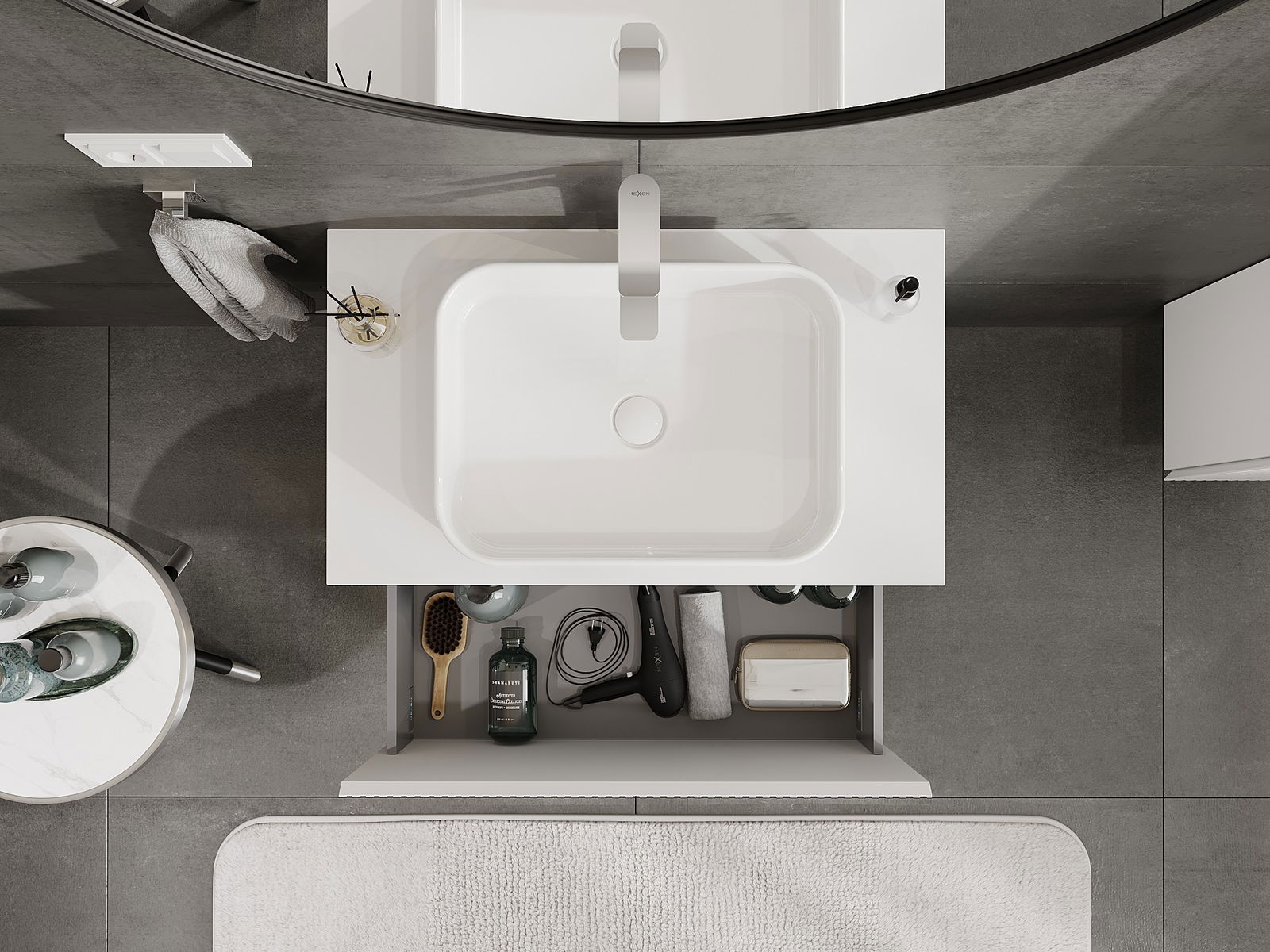 Our modular bathroom furniture can be combined in various colour configurations, allowing for complete personalisation. You can choose both the appearance and functions of individual elements, enabling you to adapt the furniture to your own stylistic and functional preferences.