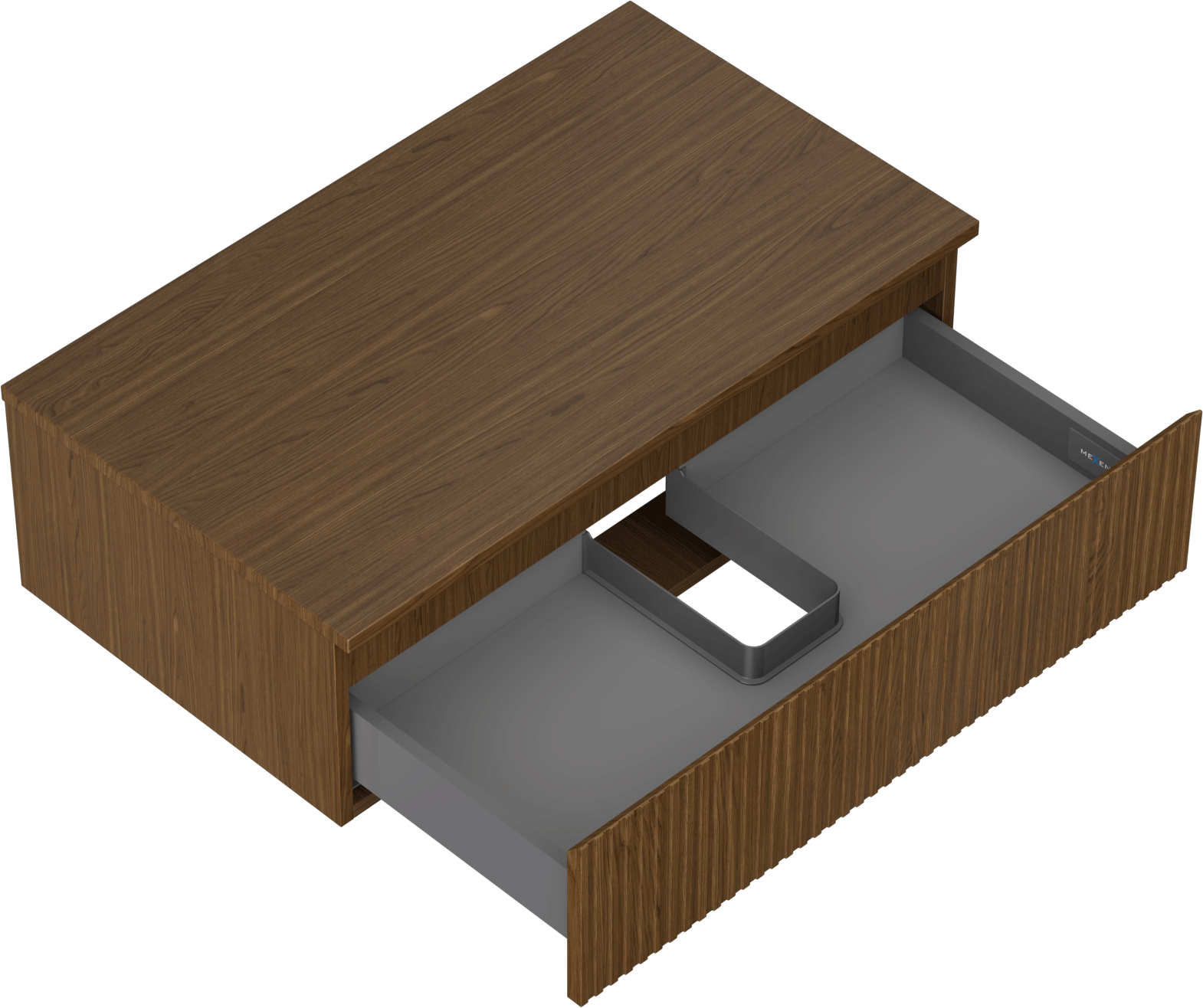The cutout in the drawer is designed in such a way as to accommodate the siphon, which is essential in sink installations. This allows the furniture to be fully functional without having to give up drawer space for the installation.
