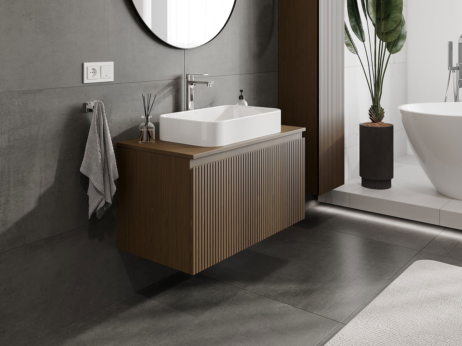 Our modular bathroom furniture can be combined in various colour configurations, allowing for complete personalisation. You can choose both the appearance and functions of individual elements, enabling you to adapt the furniture to your own stylistic and functional preferences.