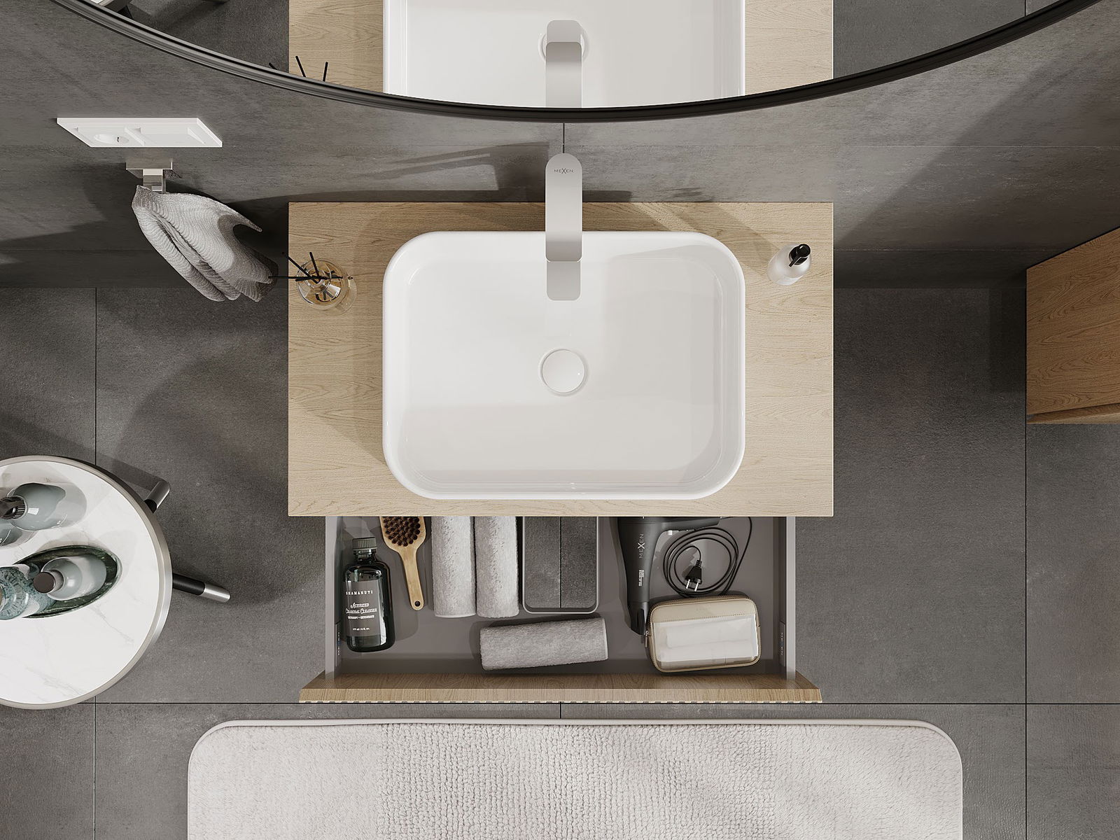 Our modular bathroom furniture can be combined in various colour configurations, allowing for complete personalisation. You can choose both the appearance and functions of individual elements, enabling you to adapt the furniture to your own stylistic and functional preferences.