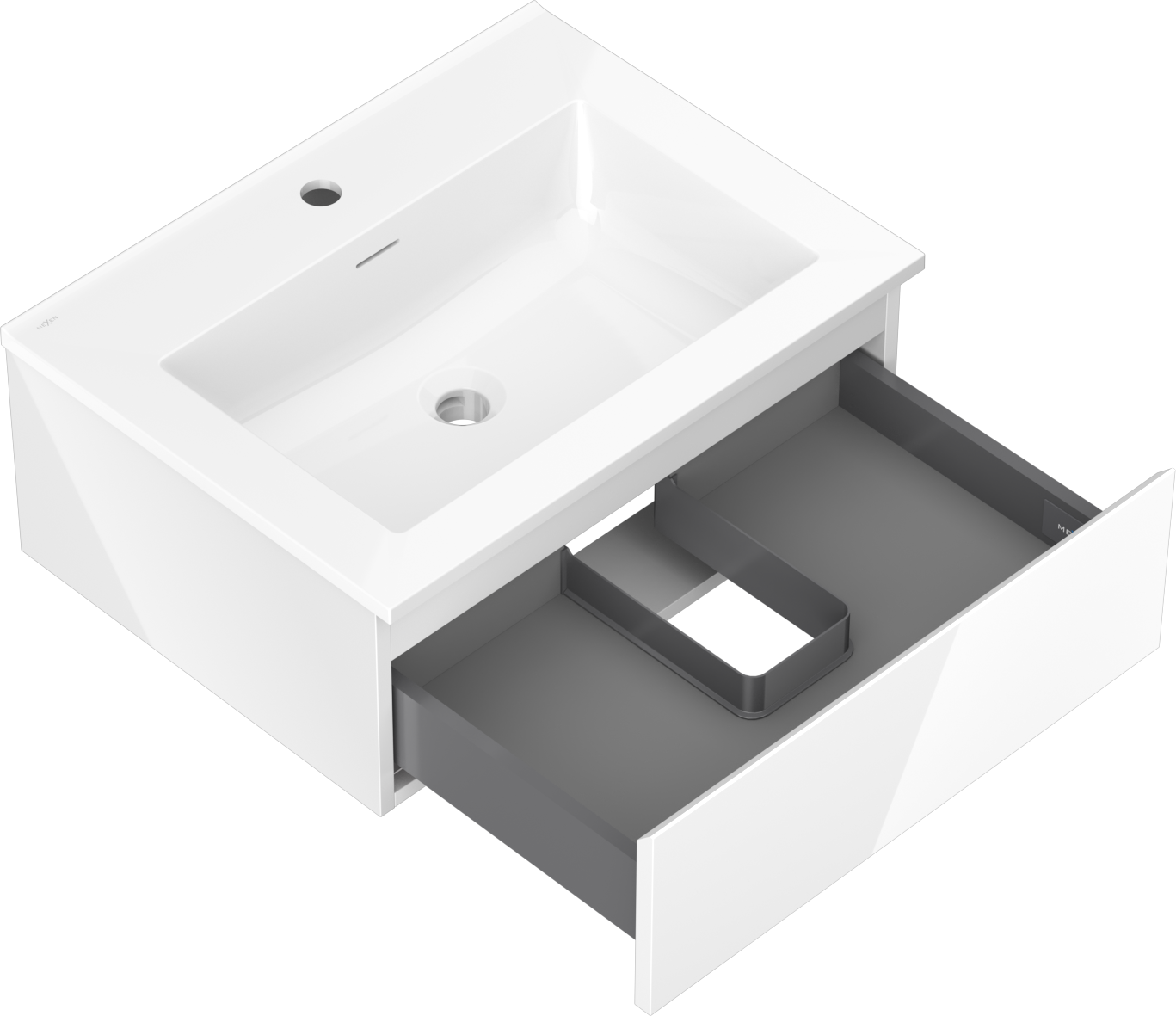 Mexen Orio 60 cm Bathroom Cabinet with Otis Sink, 1 Drawer, High Gloss White - 91A10-06023-1-BF00-W18M00
