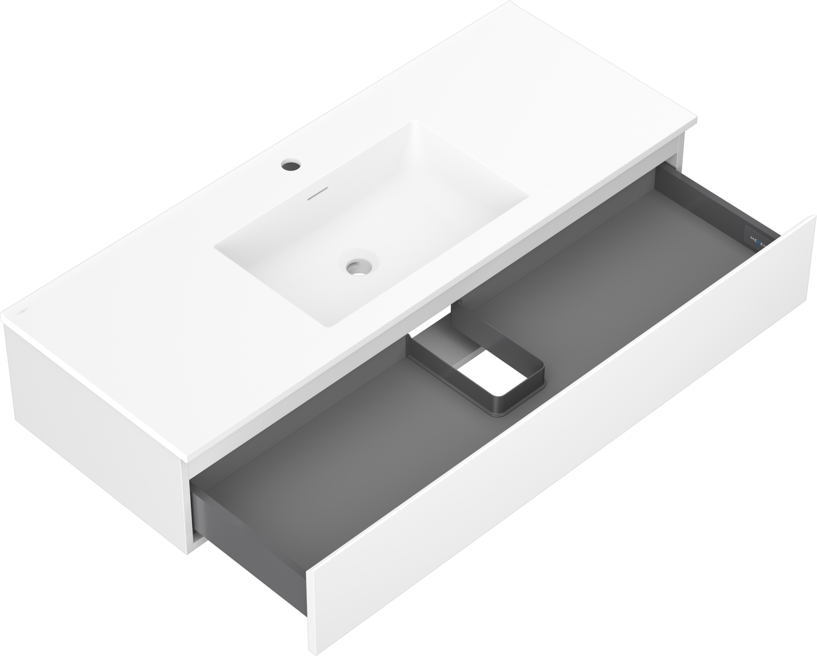 The cutout in the drawer is designed in such a way as to accommodate the siphon, which is essential in sink installations. This allows the furniture to be fully functional without having to give up drawer space for the installation.