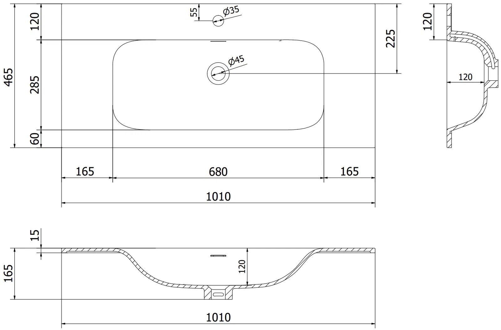 Washbasin dimensions: