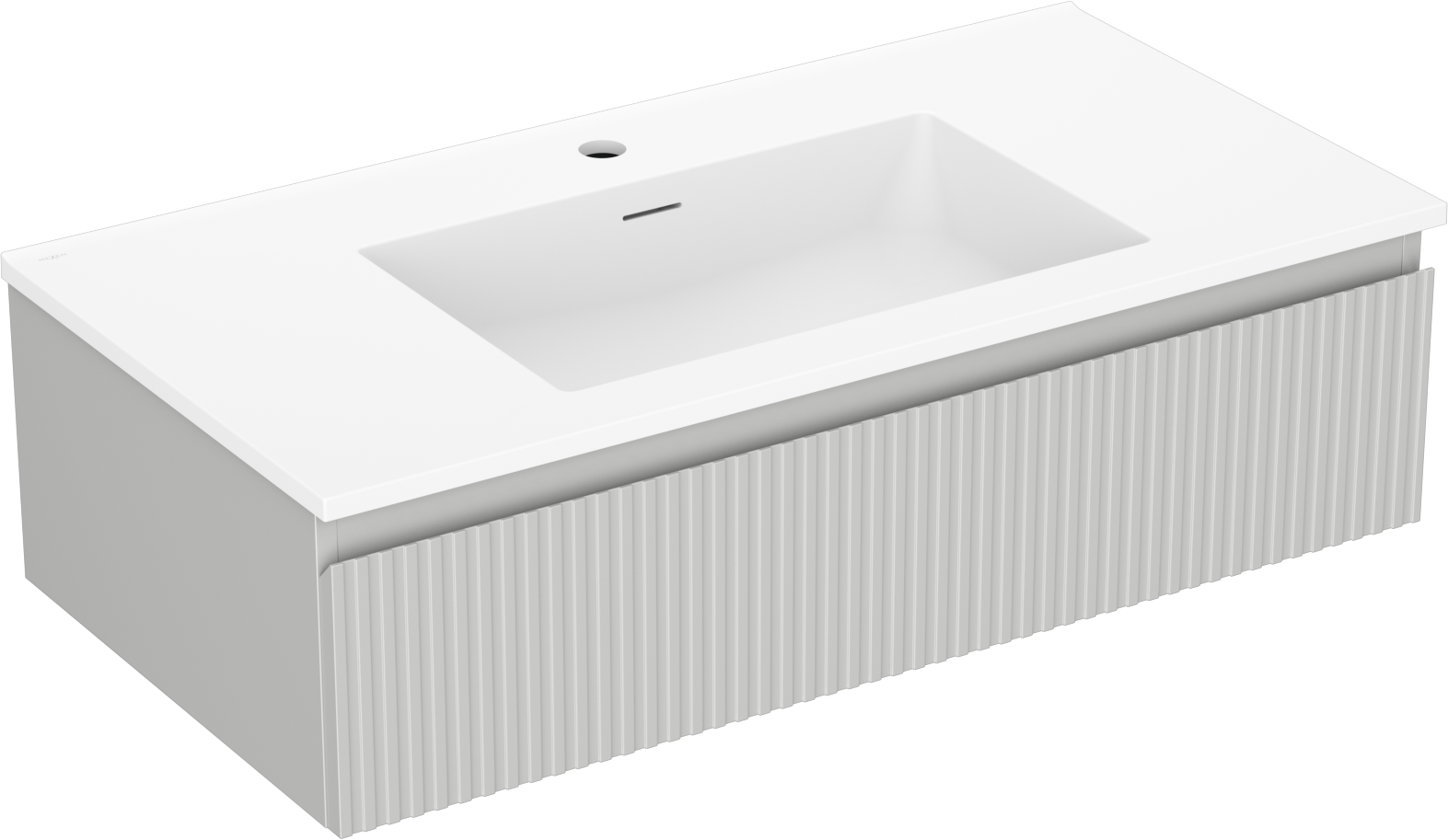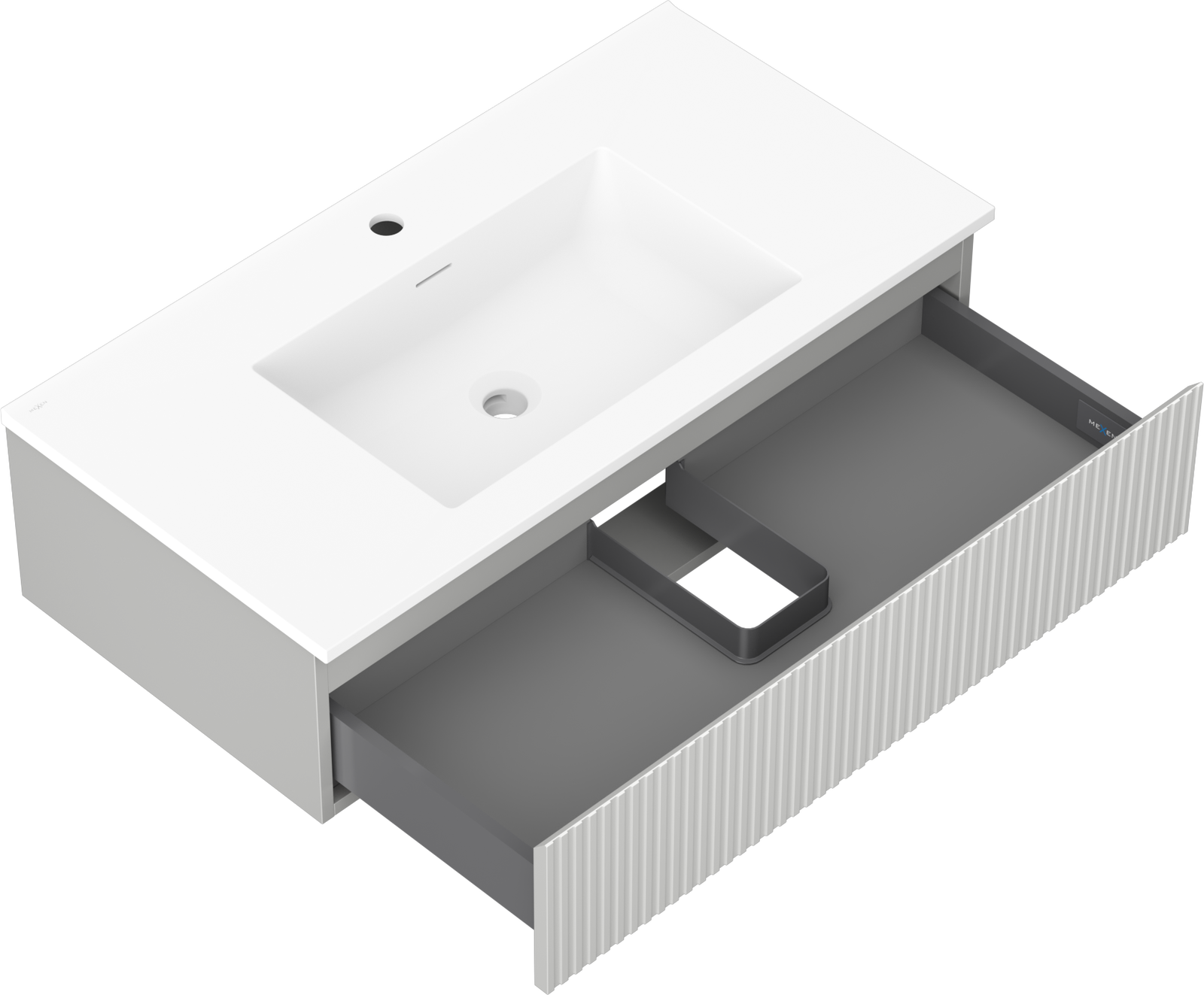 Mexen Rivel Bathroom Cabinet 90 cm with Otis Sink, 1 Drawer, Fluted, Grey Matte/White Matte - 91A20-09023-1-BF62-W18M01