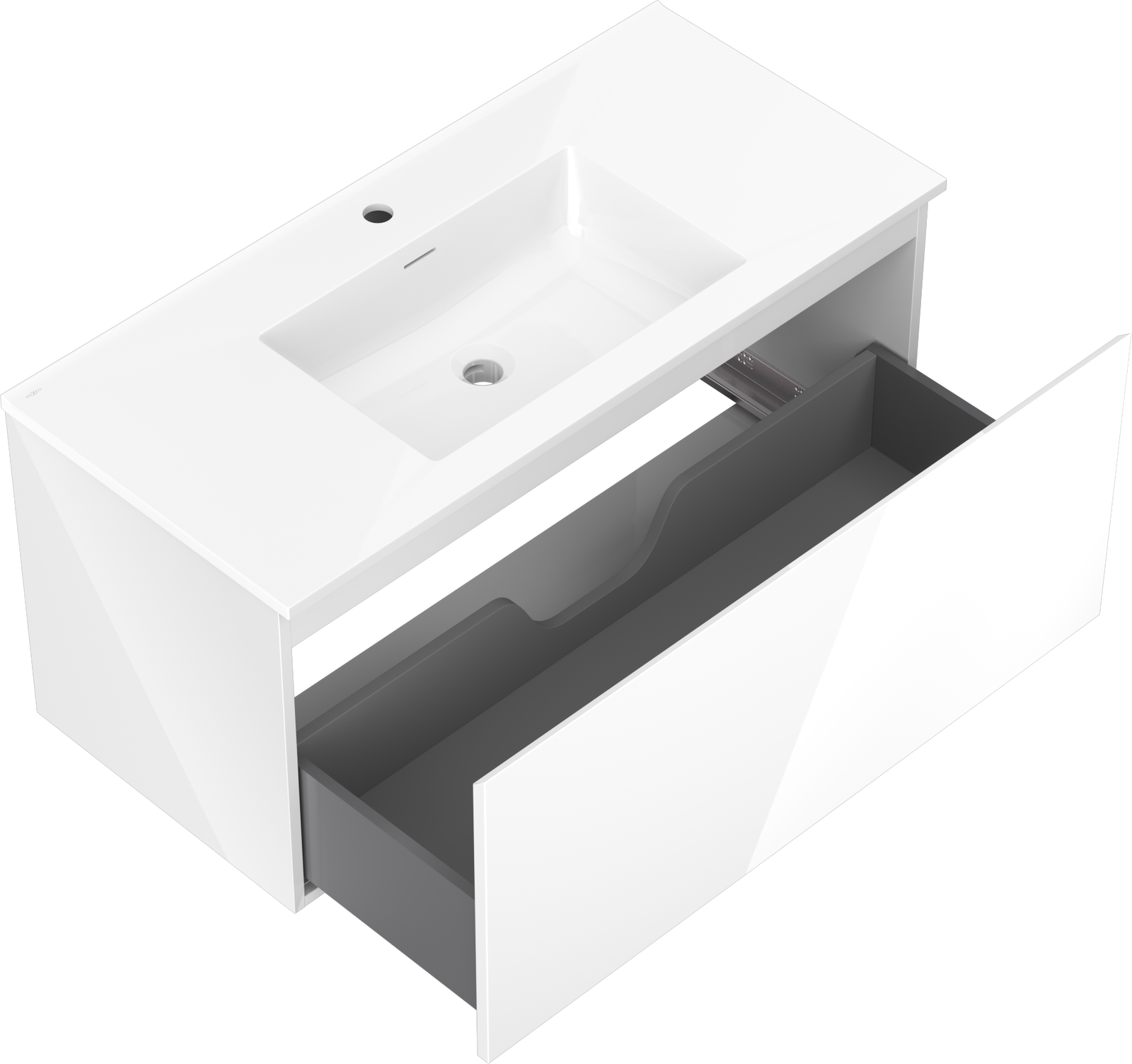 Mexen Orio bathroom cabinet 100 cm with Otis sink, 1 drawer, white gloss - 91A10-10047-1-BF00-W18M00