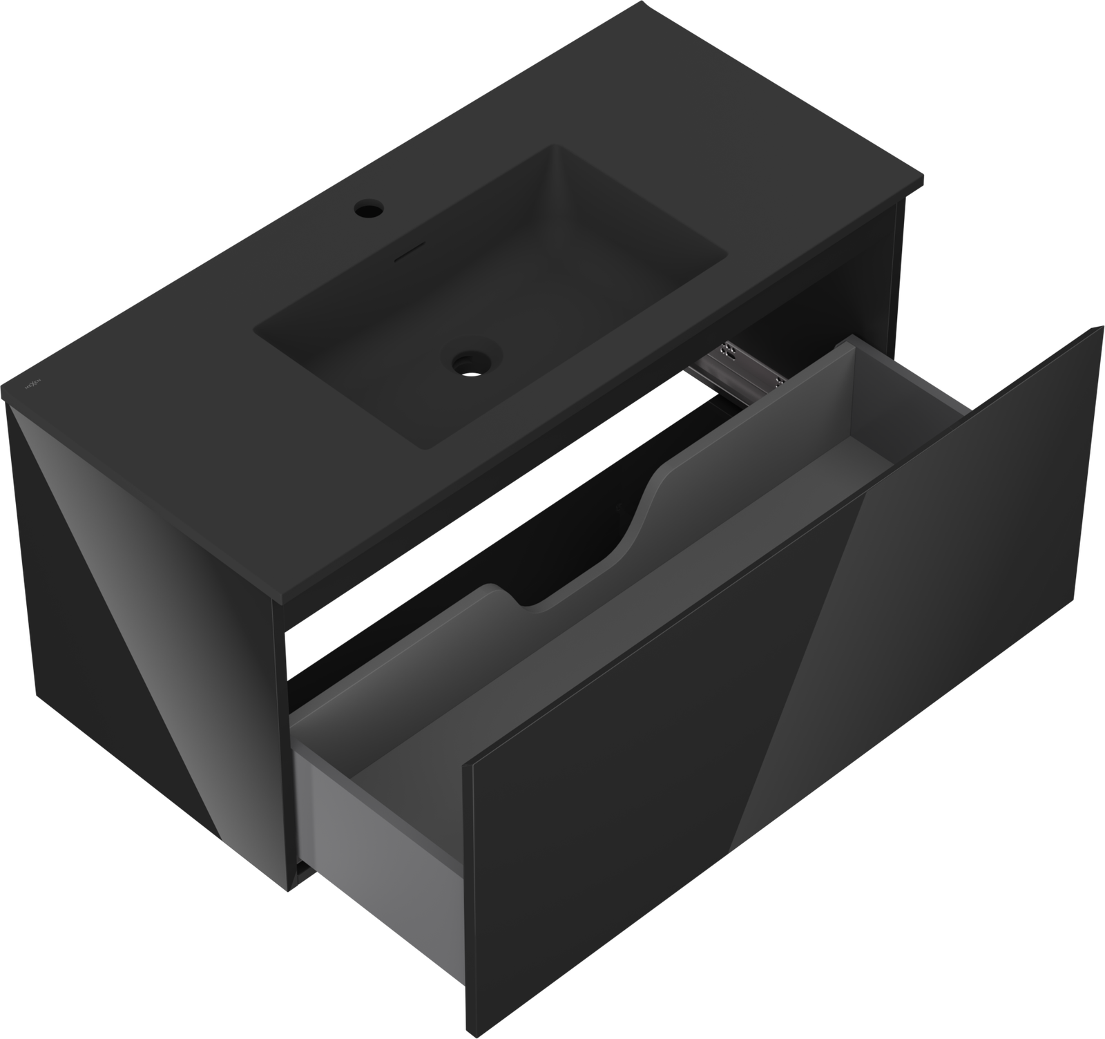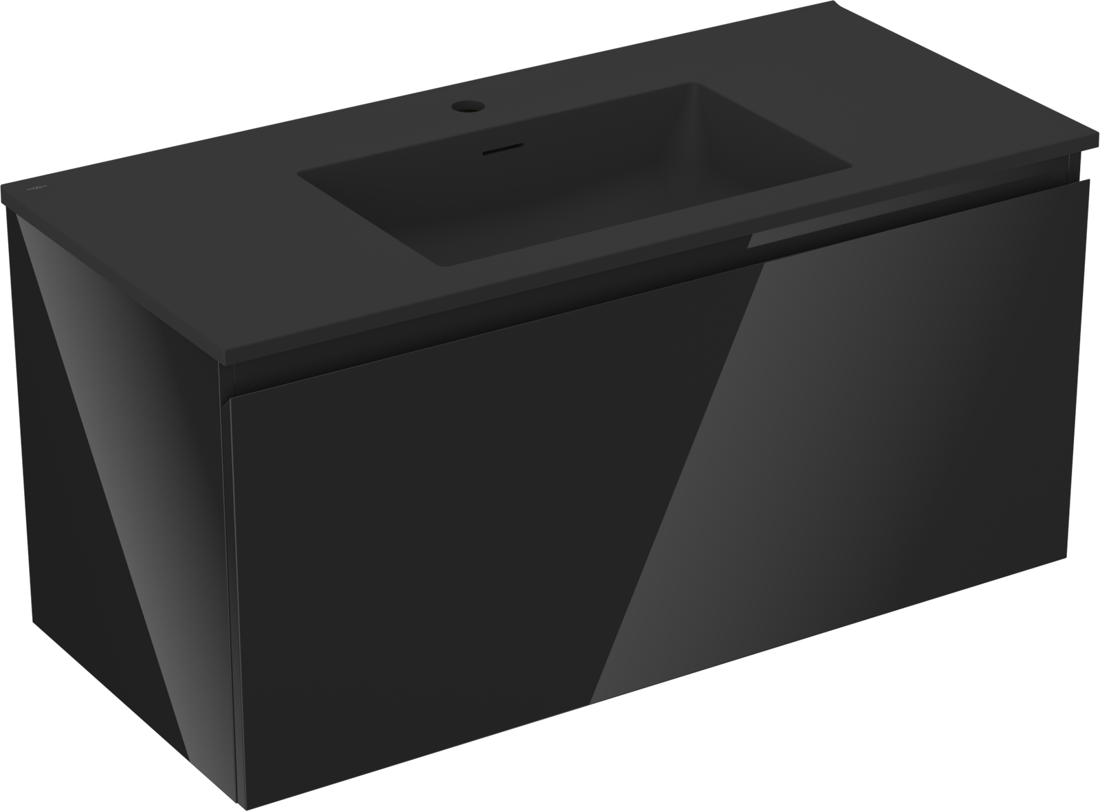 Mexen Orio 100 cm Bathroom Cabinet with Otis Sink, 1 Drawer, Black Gloss/Black Matt - 91A10-10047-1-BF70-W18M71
