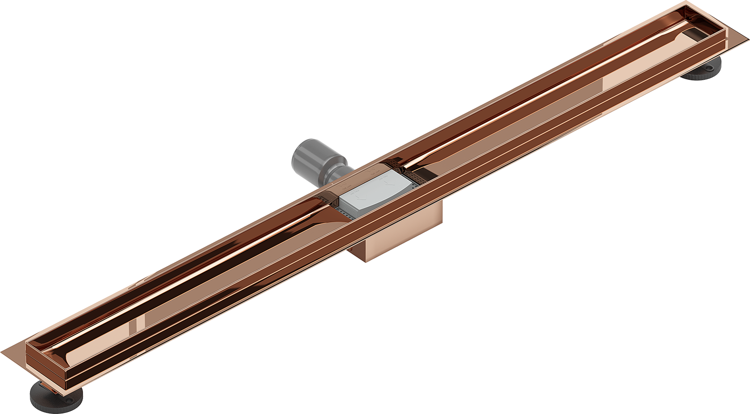The linear drain is mounted at a depth of only 52 mm. The shallow depth allows for easier preparation of the surface for the drain installation and easy leveling, ensuring high aesthetics and effective water drainage.