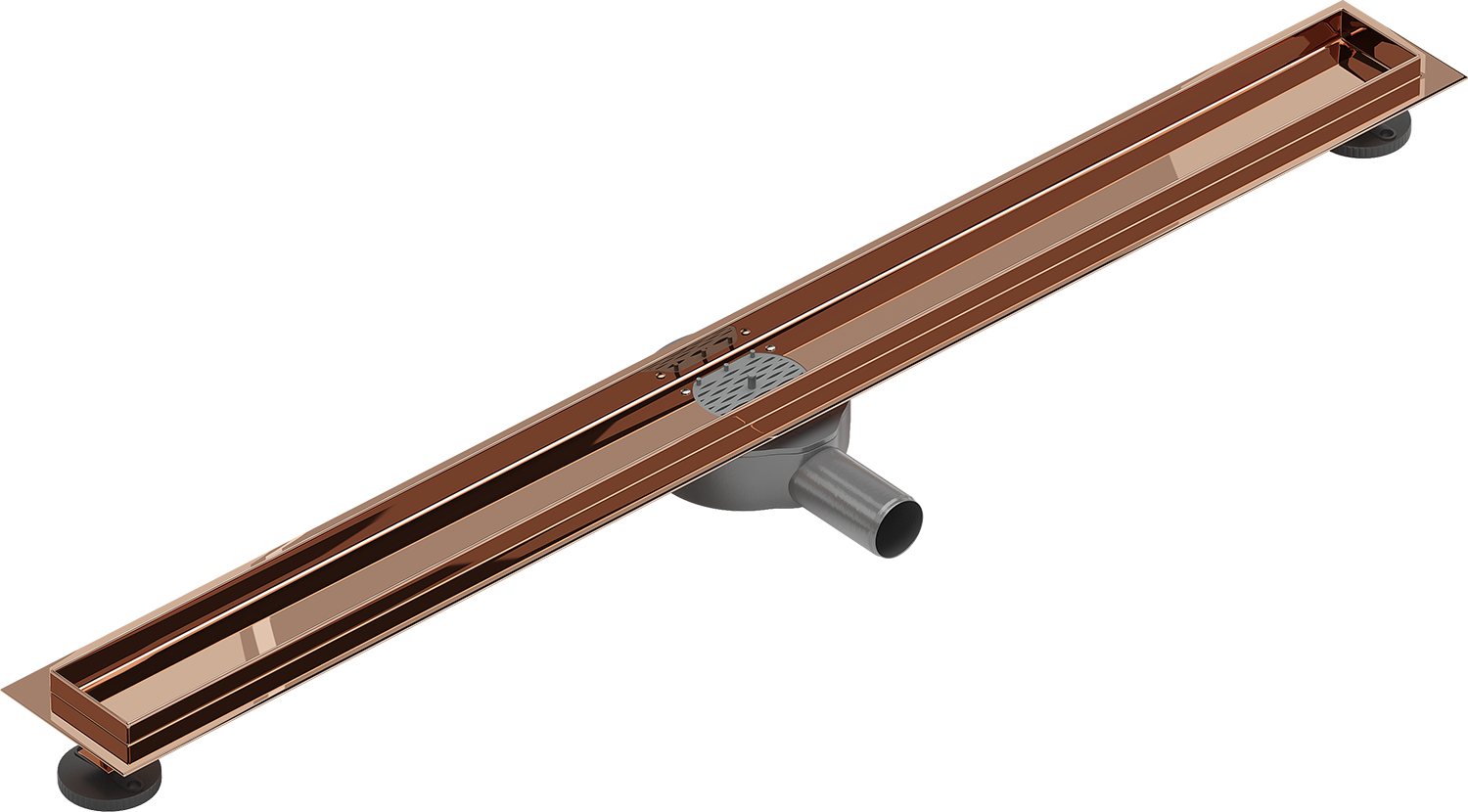 The linear drain is mounted at a depth of only 52 mm. The shallow depth allows for easier preparation of the surface for the drain installation and easy leveling, ensuring high aesthetics and effective water drainage.