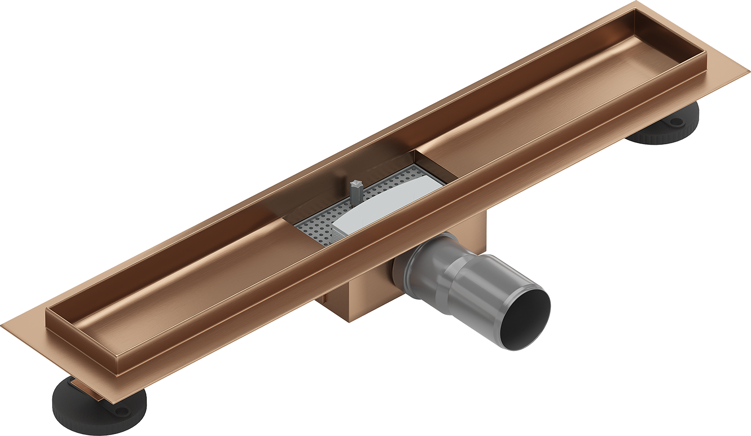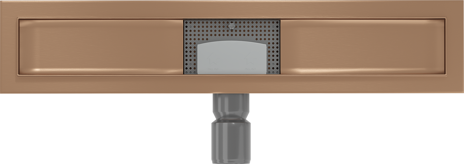 The linear drain is mounted at a depth of only 52 mm. The shallow depth allows for easier preparation of the surface for the drain installation and easy leveling, ensuring high aesthetics and effective water drainage.