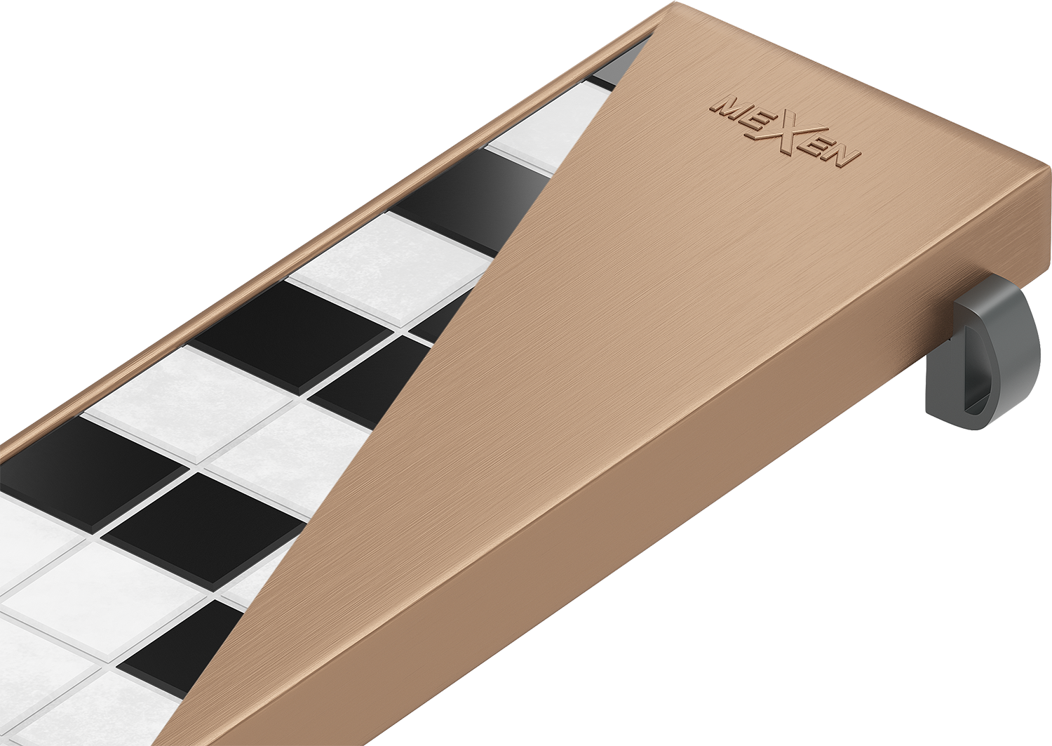 A double-sided cover with the option to rotate at any moment allows for changing the arrangement. On one side, there is smooth stainless steel; when reversed, the cover can be tiled to create a connection with the floor.