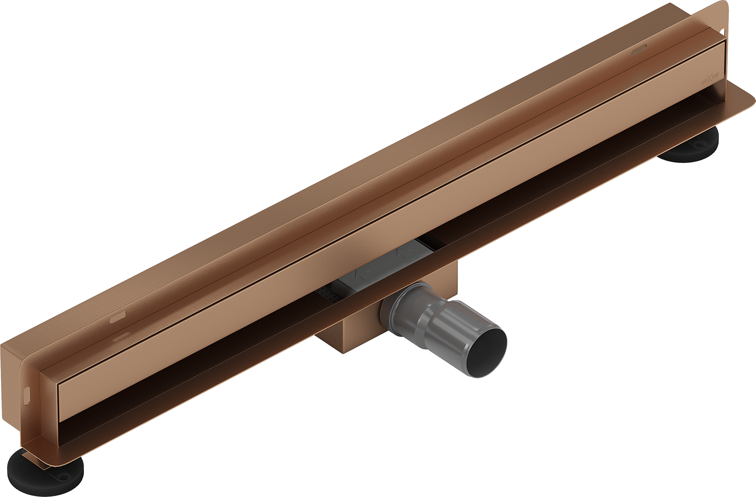 The linear drain is mounted at a depth of only 52 mm. The shallow depth allows for easier preparation of the surface for the drain installation and easy leveling, ensuring high aesthetics and effective water drainage.
