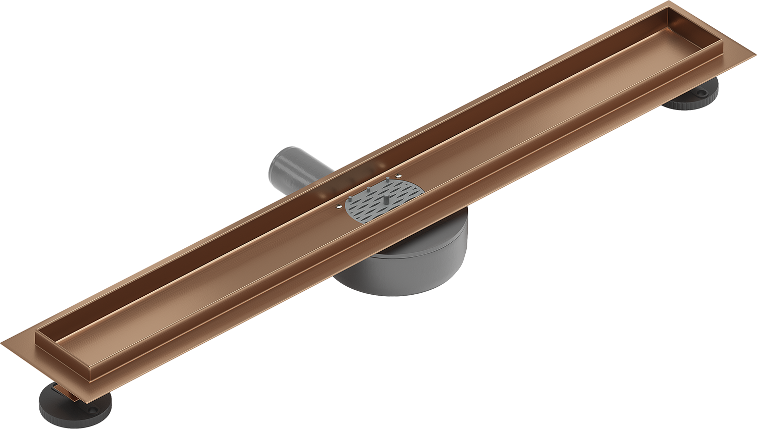The linear drain is mounted at a depth of only 52 mm. The shallow depth allows for easier preparation of the surface for the drain installation and easy leveling, ensuring high aesthetics and effective water drainage.