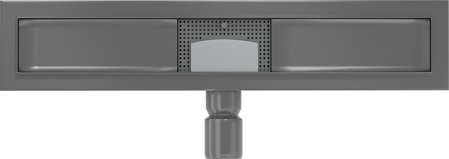 The linear drain is mounted at a depth of only 52 mm. The shallow depth allows for easier preparation of the surface for the drain installation and easy leveling, ensuring high aesthetics and effective water drainage.