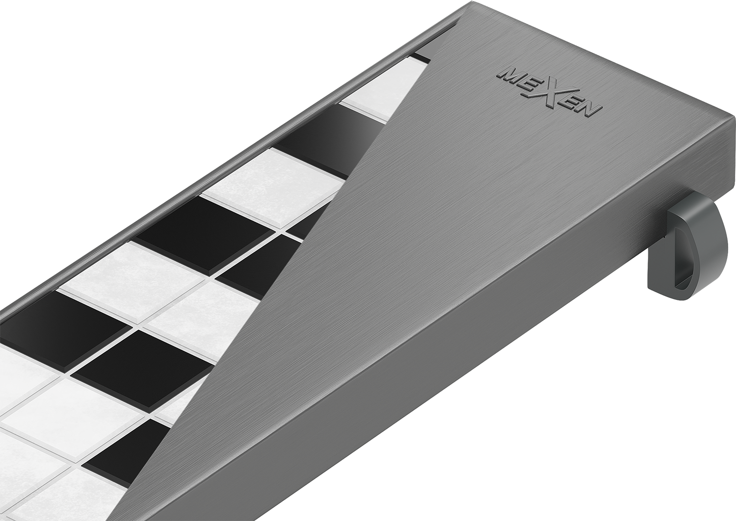 A double-sided cover with the option to rotate at any moment allows for changing the arrangement. On one side, there is smooth stainless steel; when reversed, the cover can be tiled to create a connection with the floor.