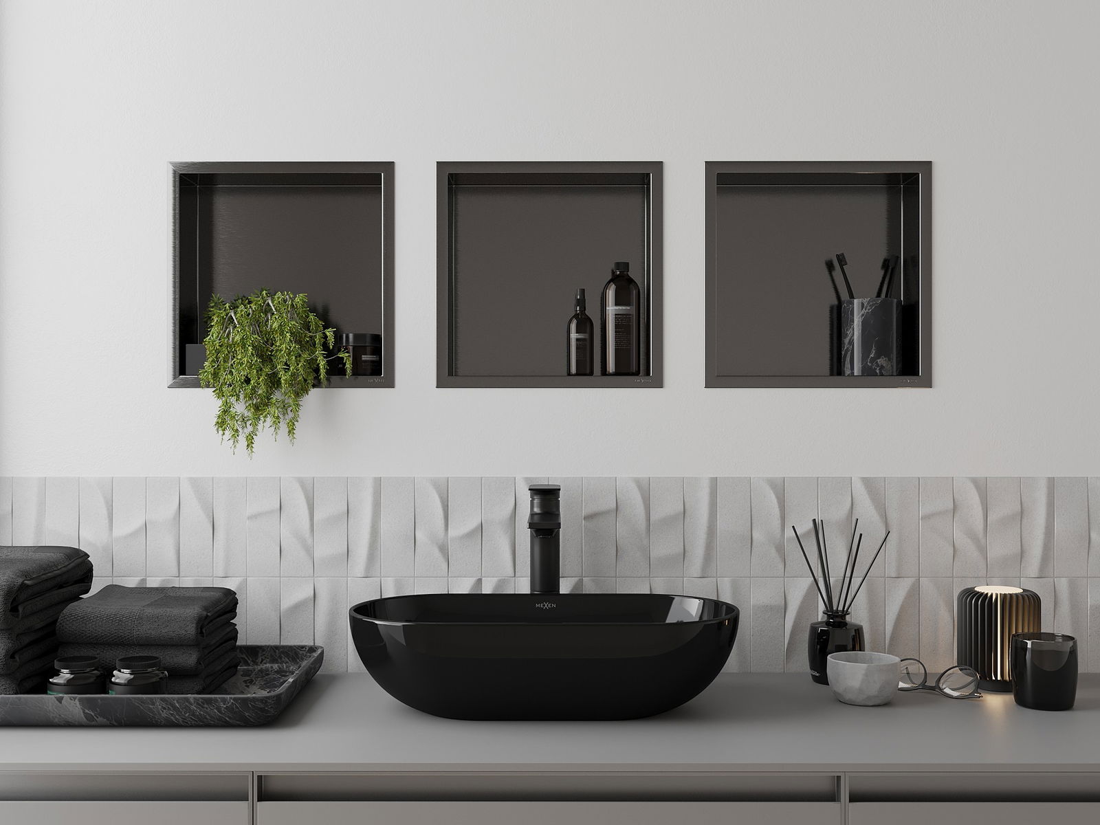 Mexen X-Wall-R recessed shelf with flange 30 x 30 cm, brushed gun grey - 19E0303010