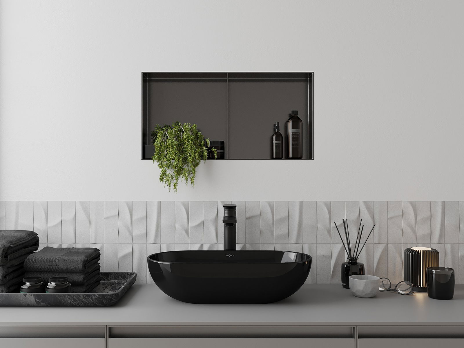 Mexen X-Wall-NR recessed shelf without flange with shelf 60 x 30 cm, brushed gun grey - 19E1603010S